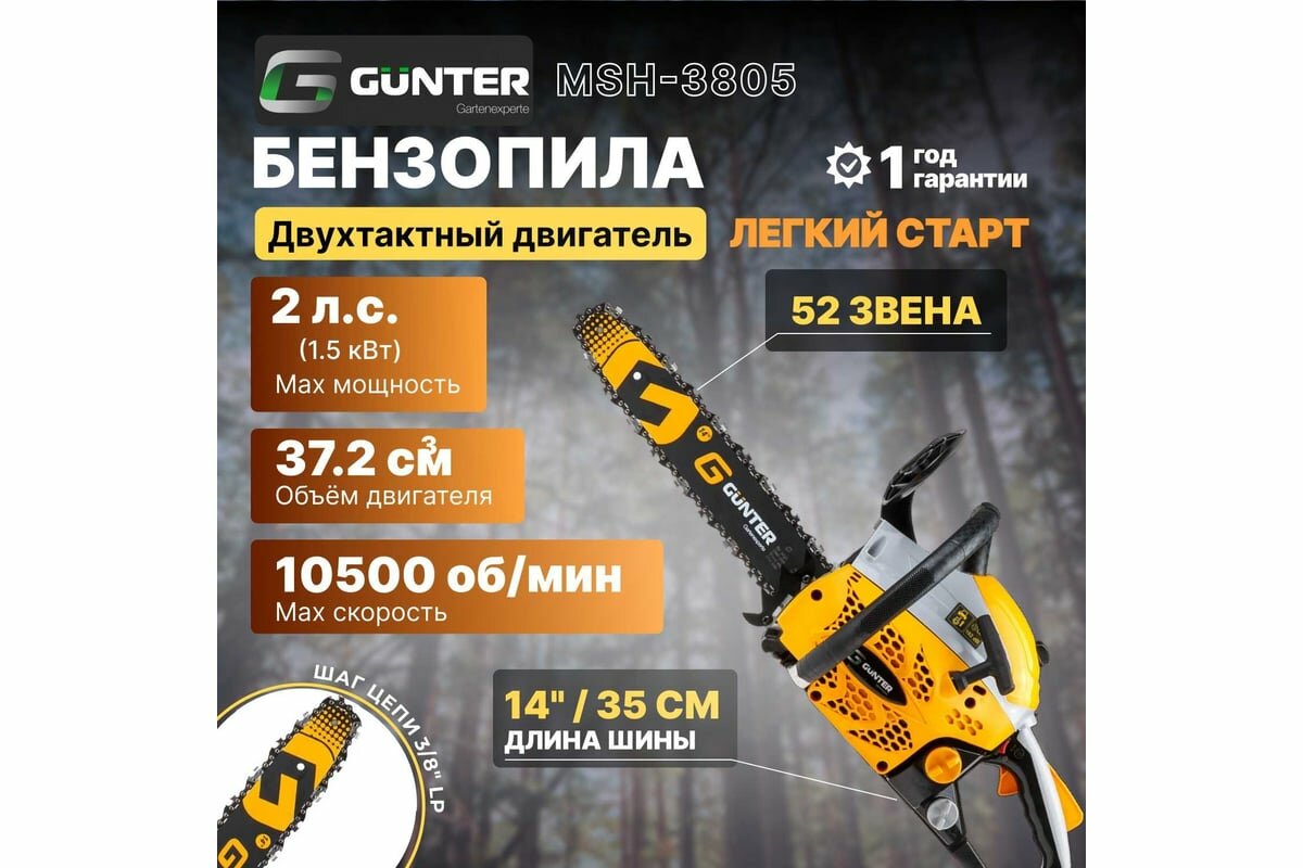 Бензопила GUNTER MSH-3805 1.5 кВт, 2.0 л.с, 35 см 3/8 х 1.3 х 52 зв