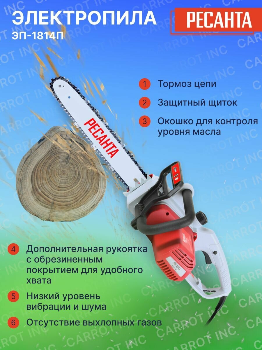 Электропила Ресанта ЭП-1814П с мощностью 1800 Вт, длина шины 35.5 см
