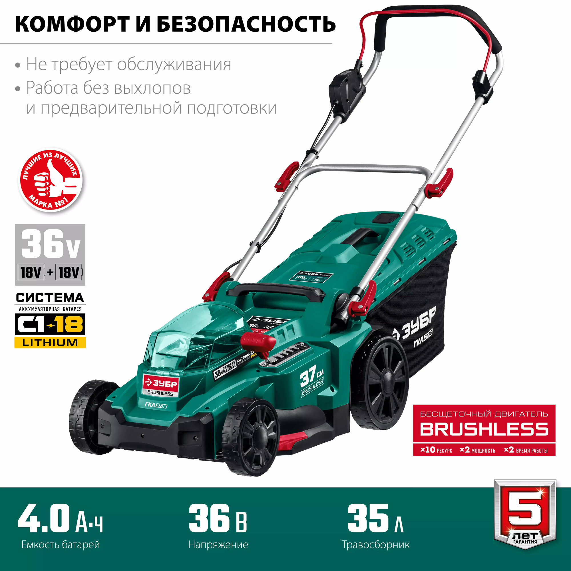 Бесщеточная газонокосилка, без АКБ ГКЛ-3736 ЗУБР 36В интересное: