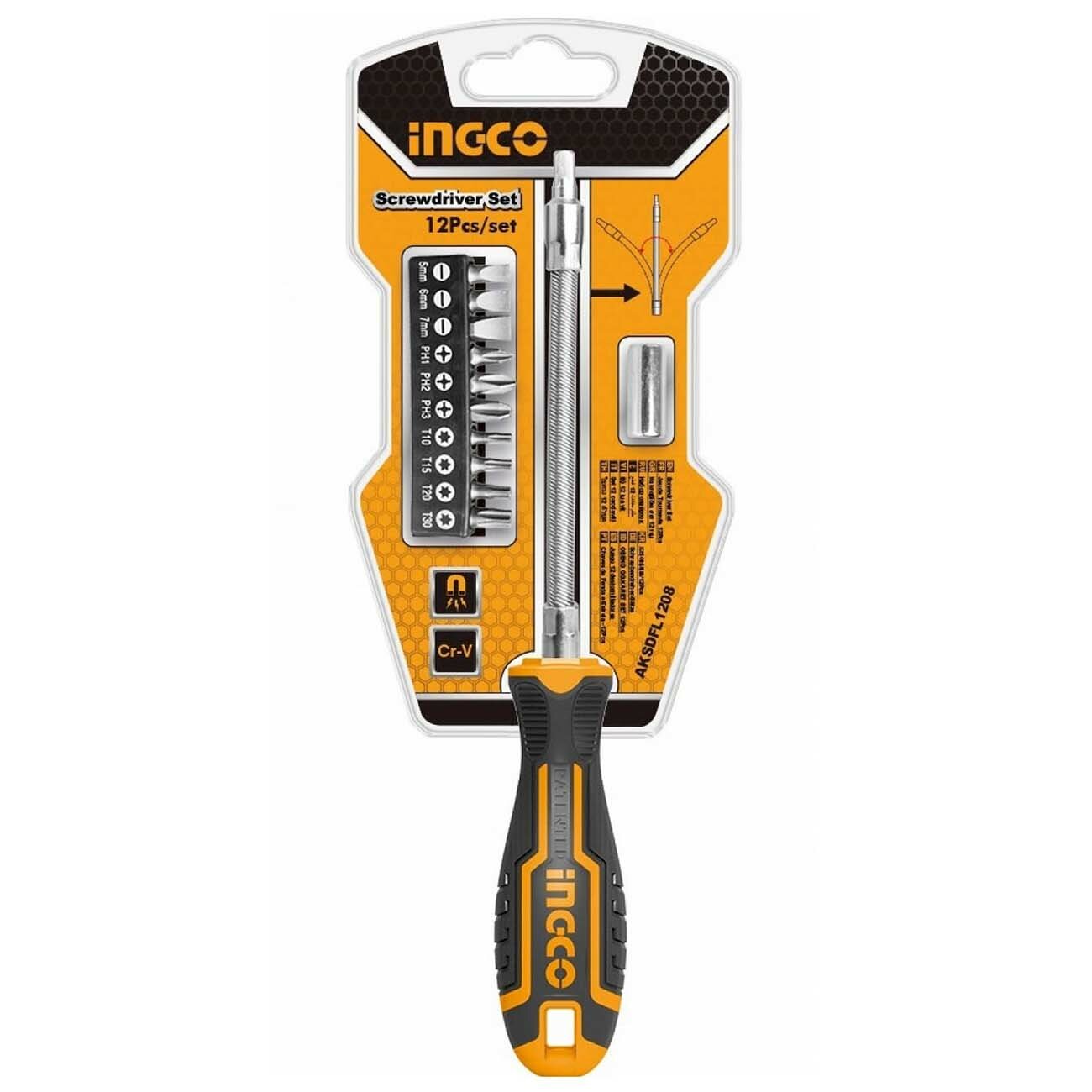 Отвертка с гибким стержнем и битами INGCO AKSDFL1208