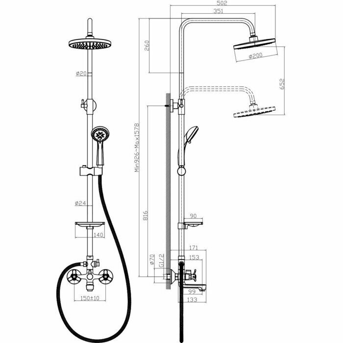 Душевая система Rossinka Q02-46 с регулируемой высотой штанги