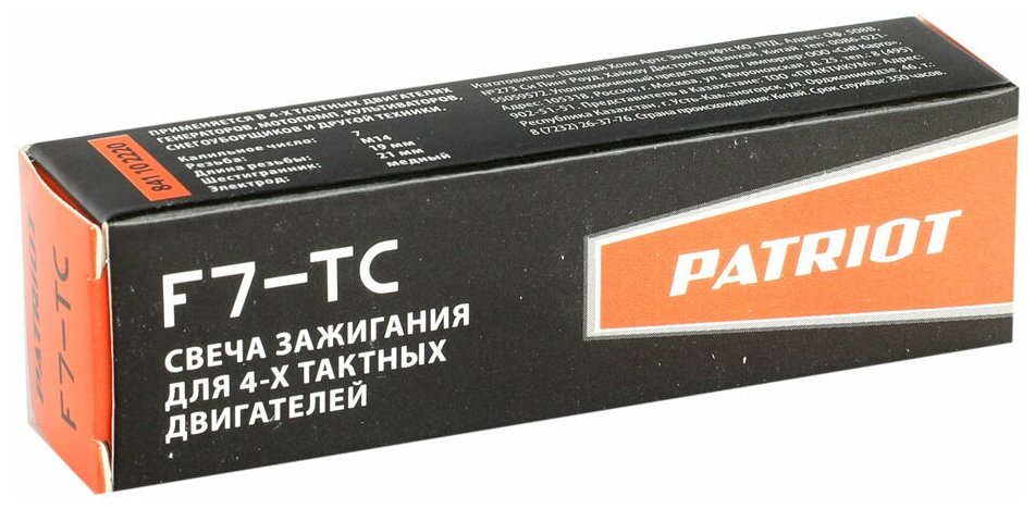Свечи для 4-х тактных двигателей Patriot F7TC 841102220 интересное:
