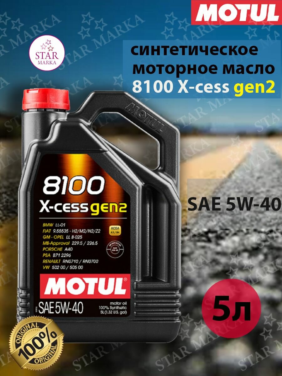 Синтетическое моторное масло Motul 8100 X-cess GEN2 5W40, 5 л, 1 шт