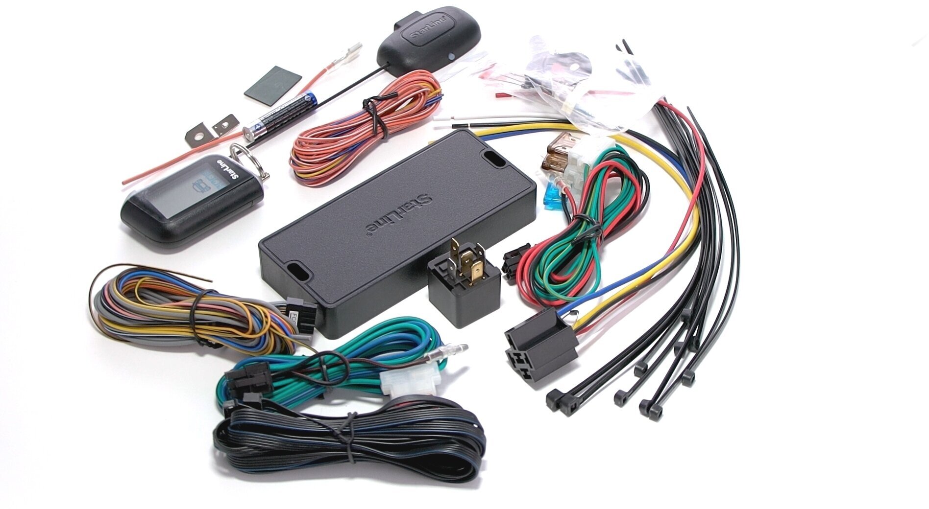 | Подробная комплектация | основной брелок, основной блок, модуль приемопередатчика с интегрированным 3D-датчиком удара/наклона, реле 5-контактное с разъемом, сервисная кнопка, светодиод, комплект проводов и монтажных материалов, комплект печатной продукции |