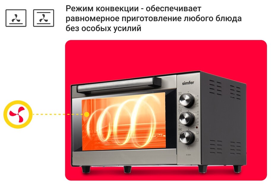 Мини-печь Simfer M3504 Classic, 5 режима работы, конвекция, 2 противня интересное: