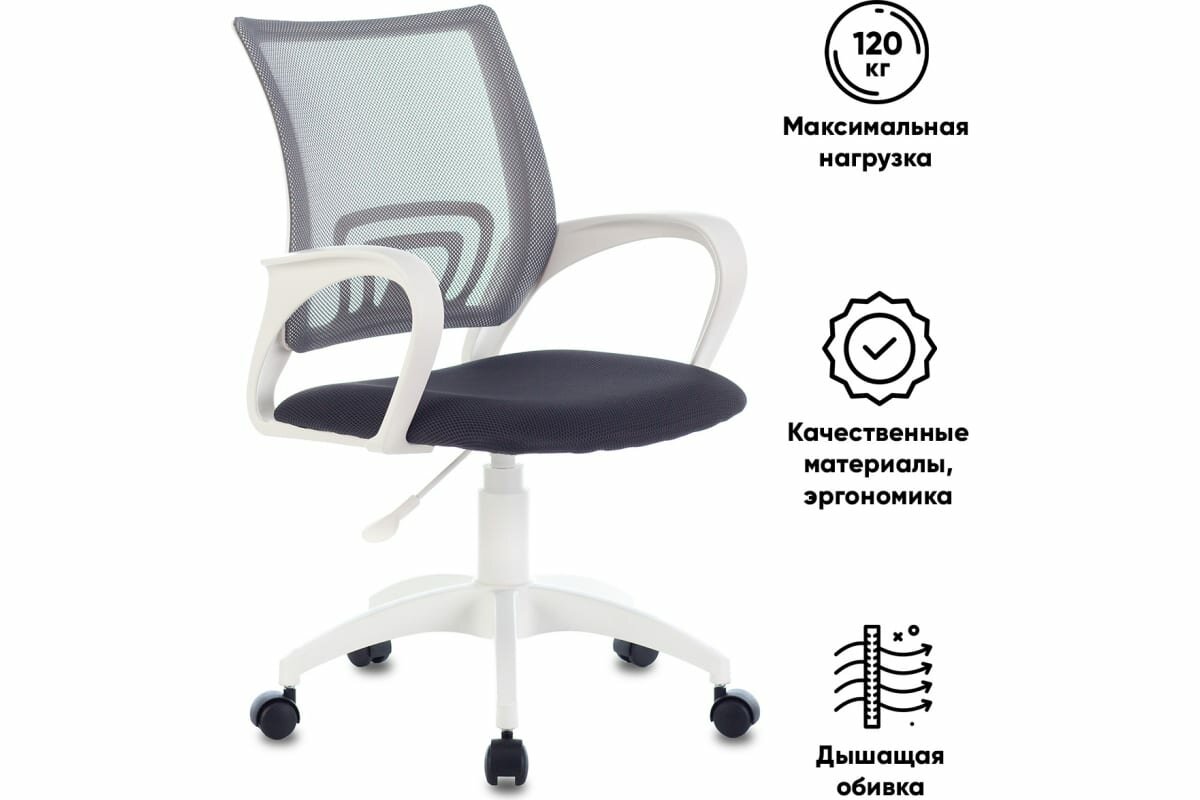 Кресло Бюрократ CH-W695NLT темно-серый TW-04 TW-12 сетка/ткань крестов. пластик пластик белый