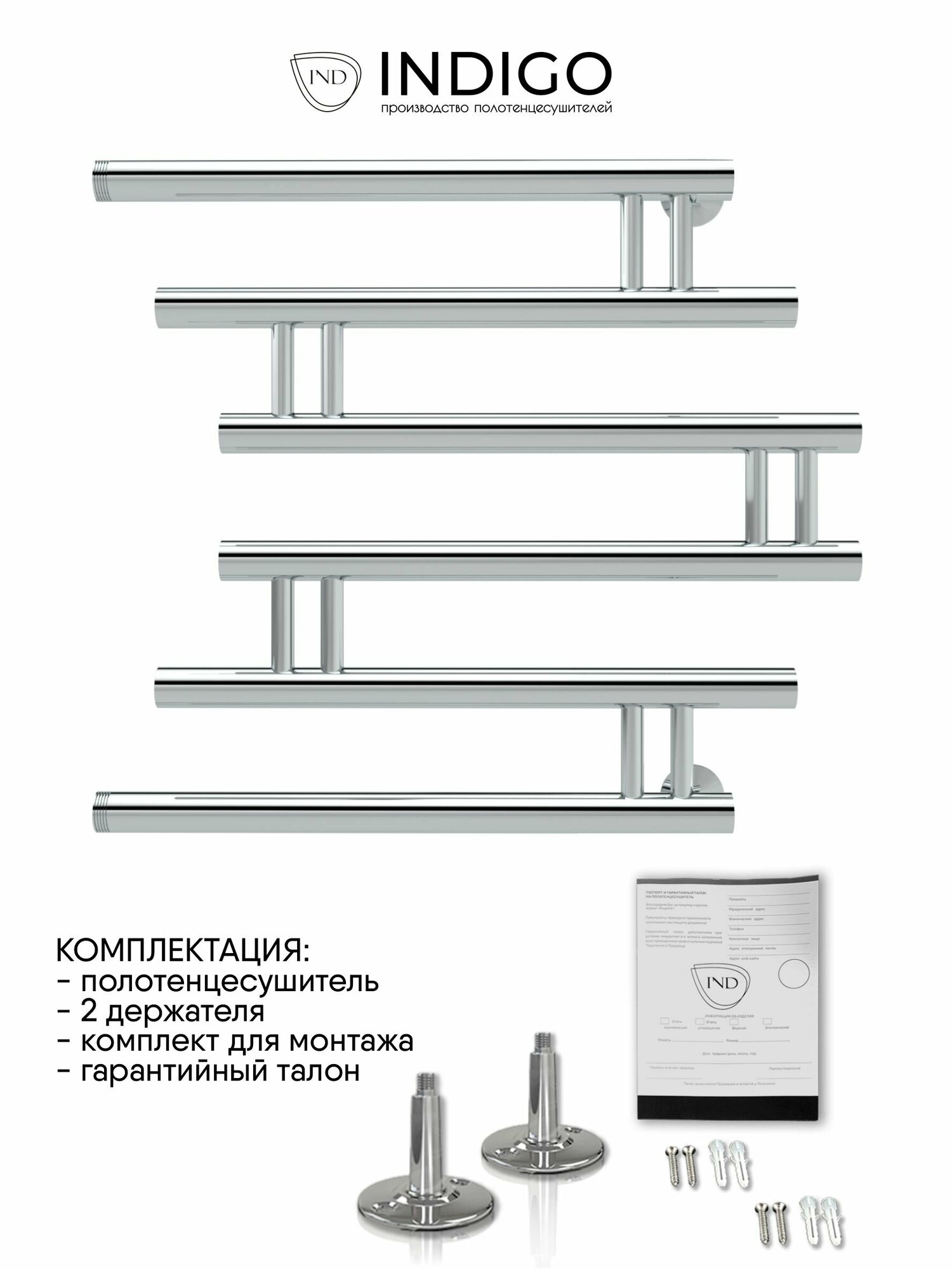 Полотенцесушитель Indigo® INDIGO FZW50-50WM Фокстрот Zip б/п (н.р.1") 50/50 с держателем, белый матовый