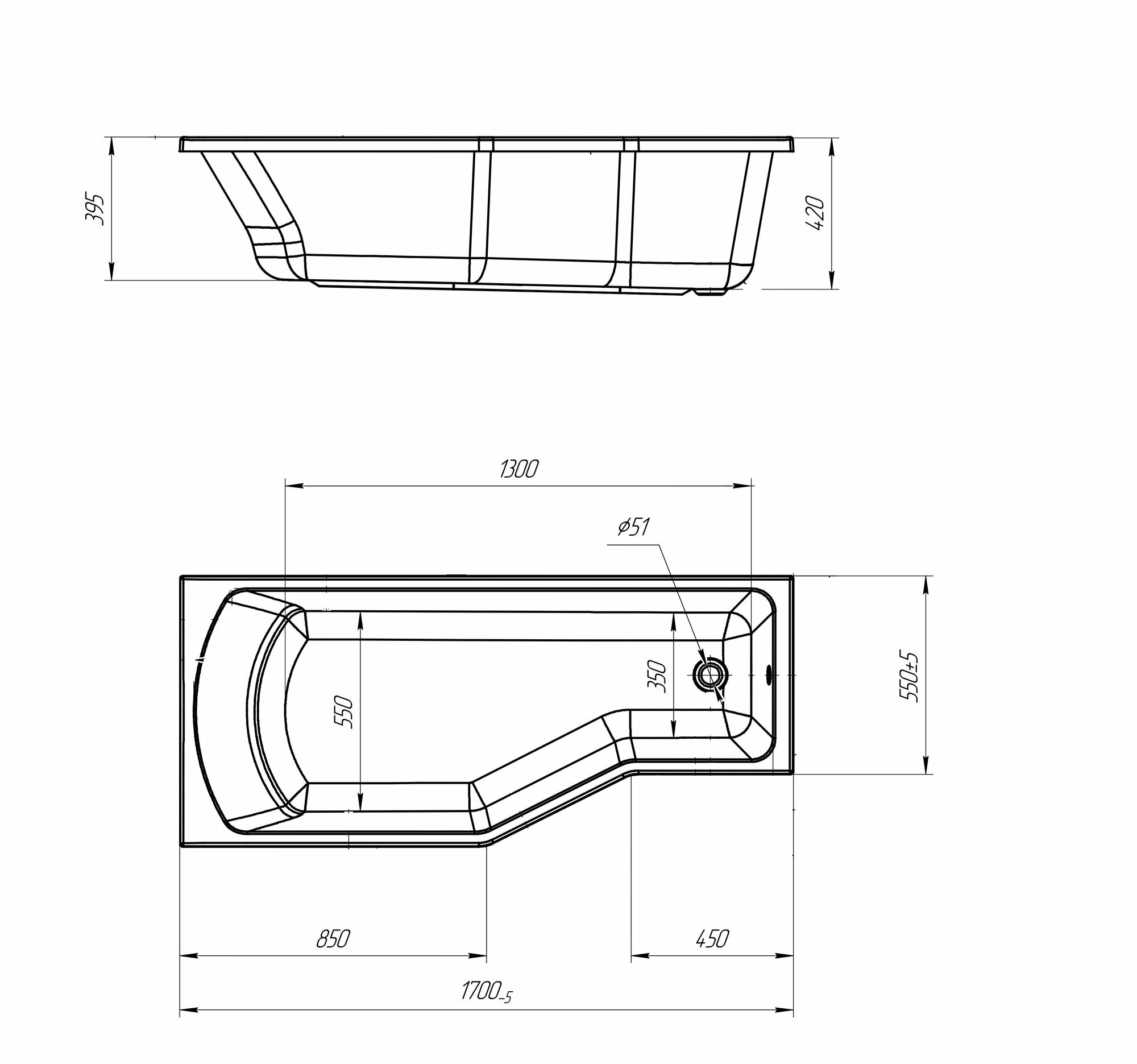 Акриловая ванна Marka One Convey 170х75 L