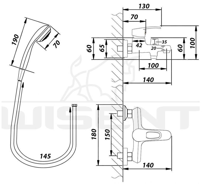 WISENT смеситель для ванны и душа с коротким изливом 30215