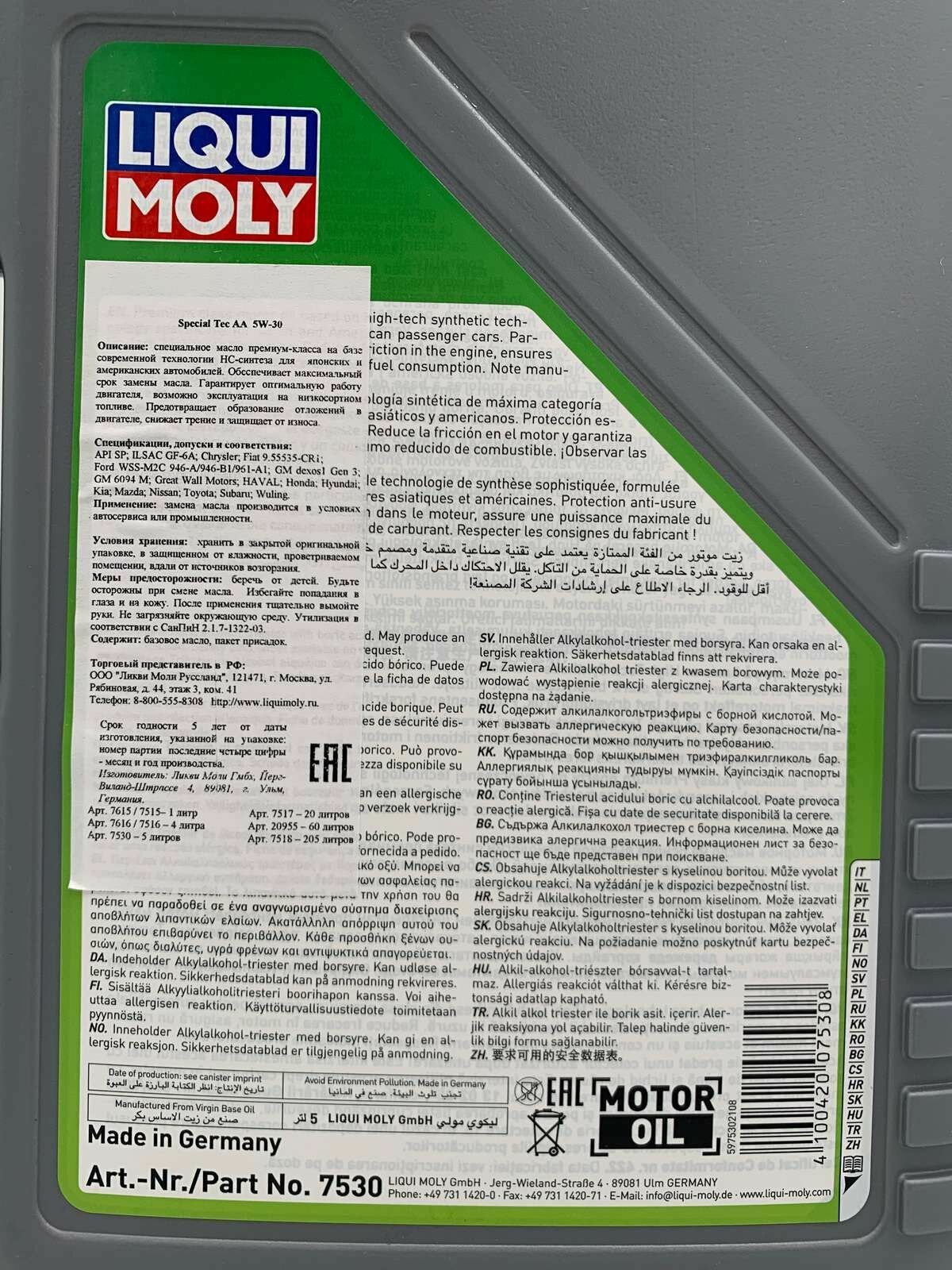 LIQUI MOLY '7530 Масло моторное Special Tec AA 5W-30 SP GF-6A (5л) 1шт
