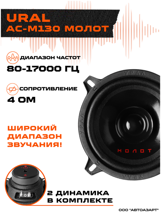 Колонки автомобильные URAL Молот АС-М130, 13 см (5 дюйм.), комплект 2 шт. [урал ас-м130]