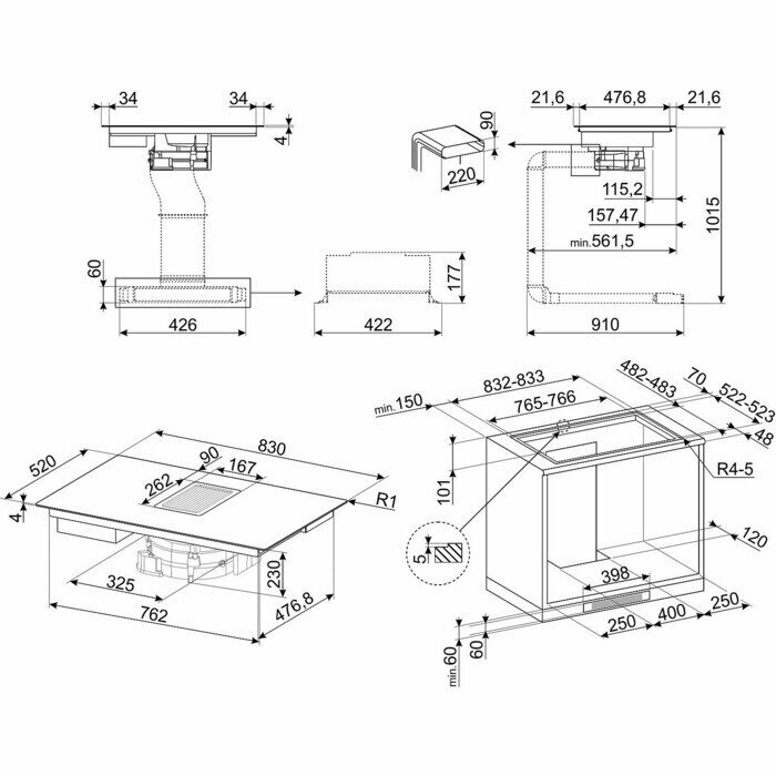 Индукционная варочная панель с вытяжкой SMEG HOBD682D1