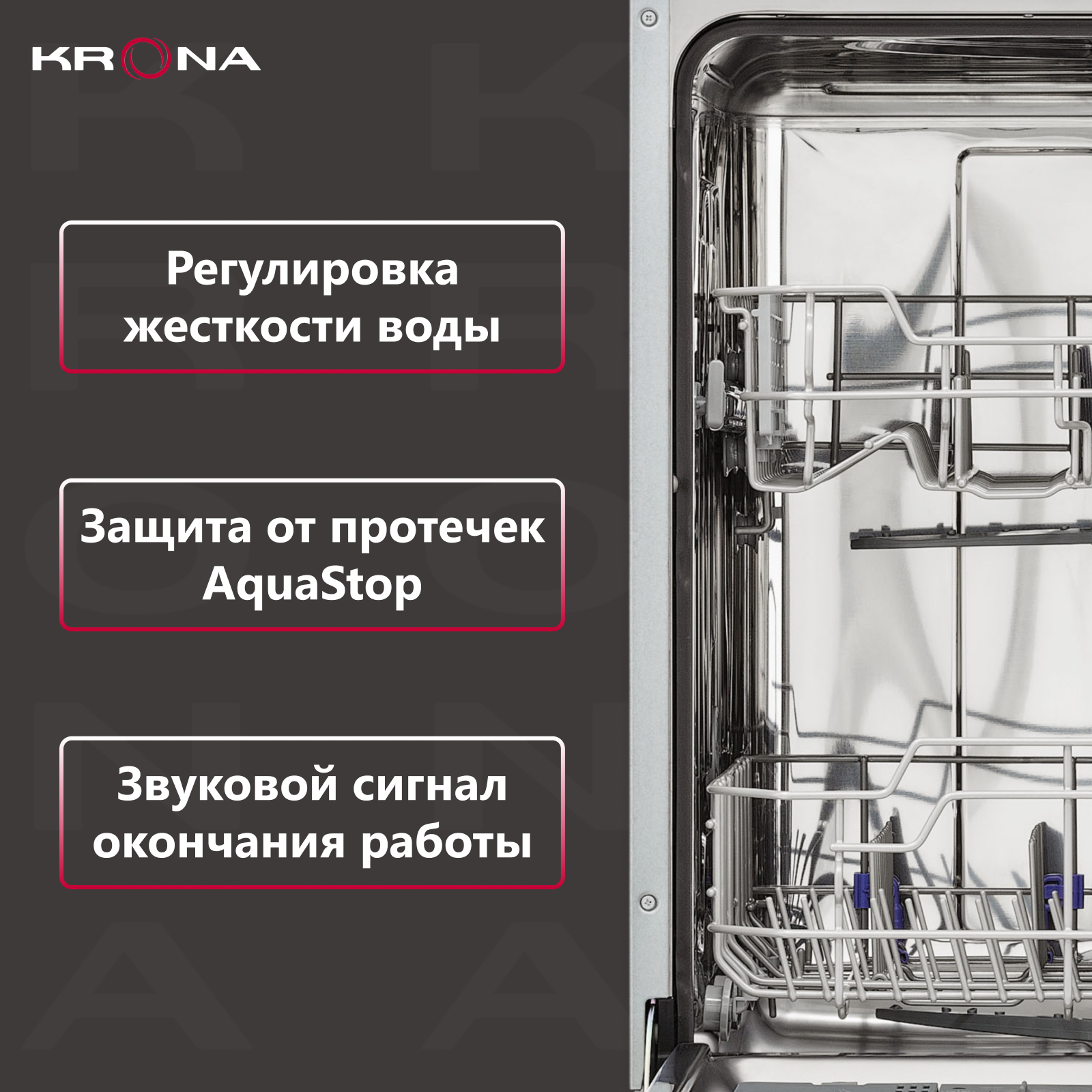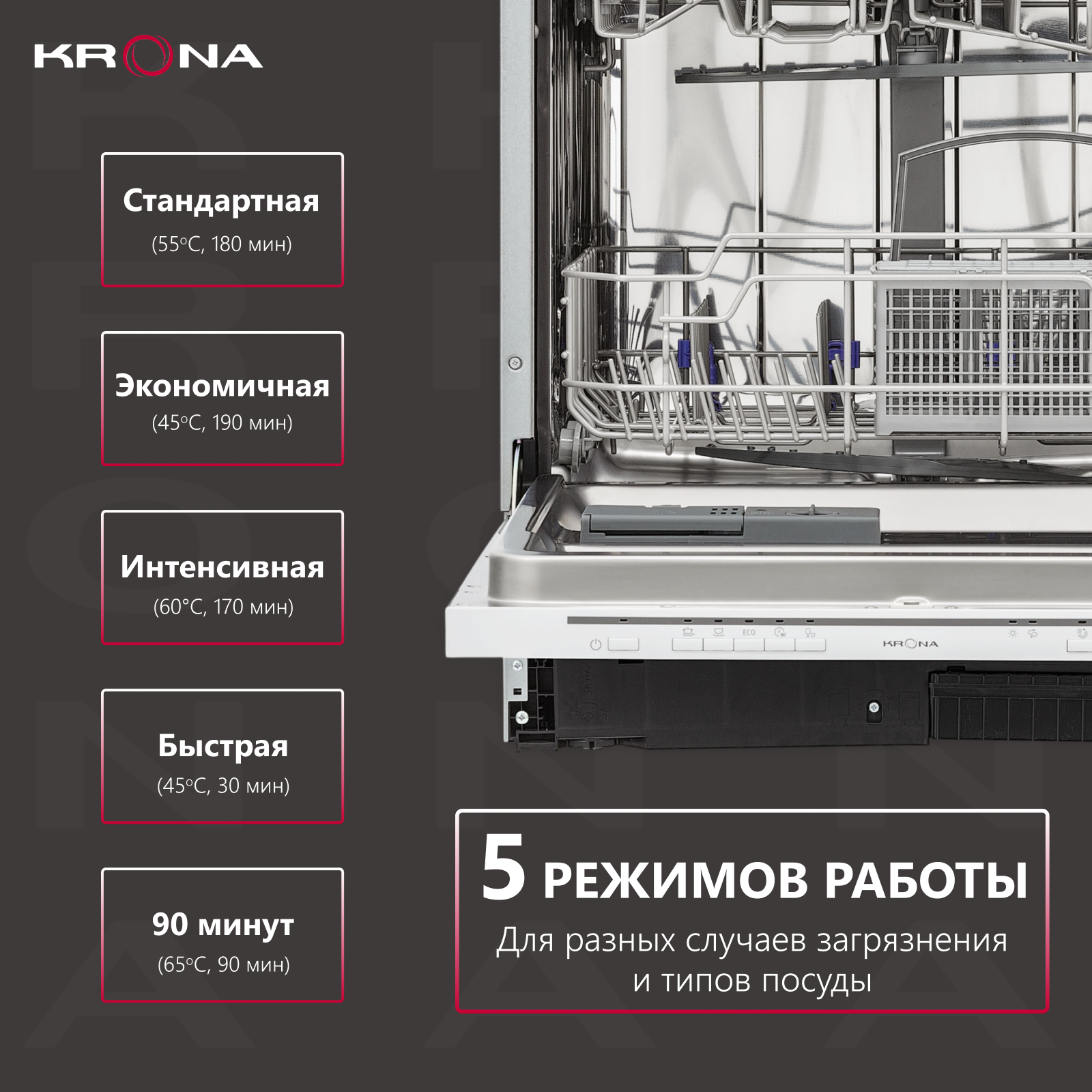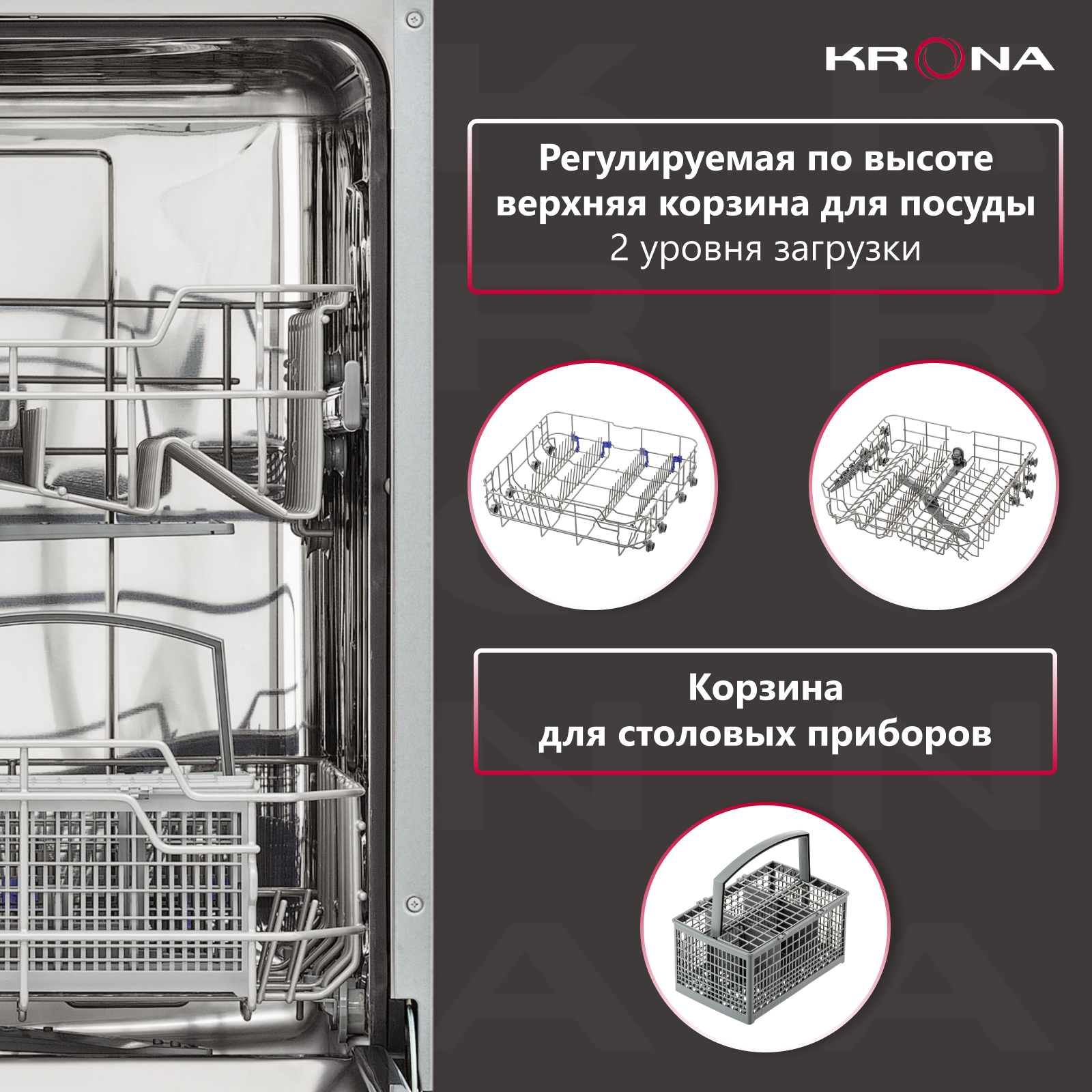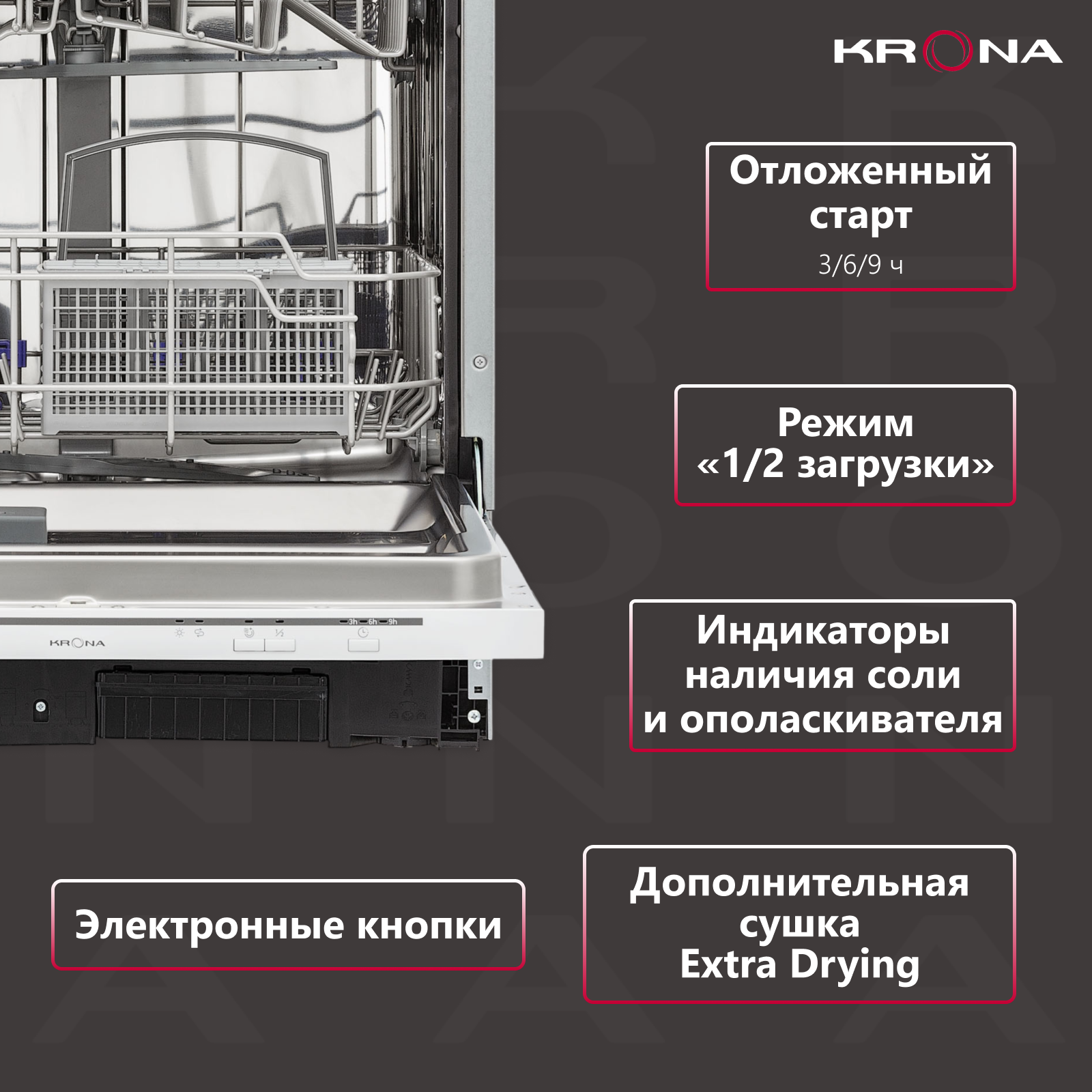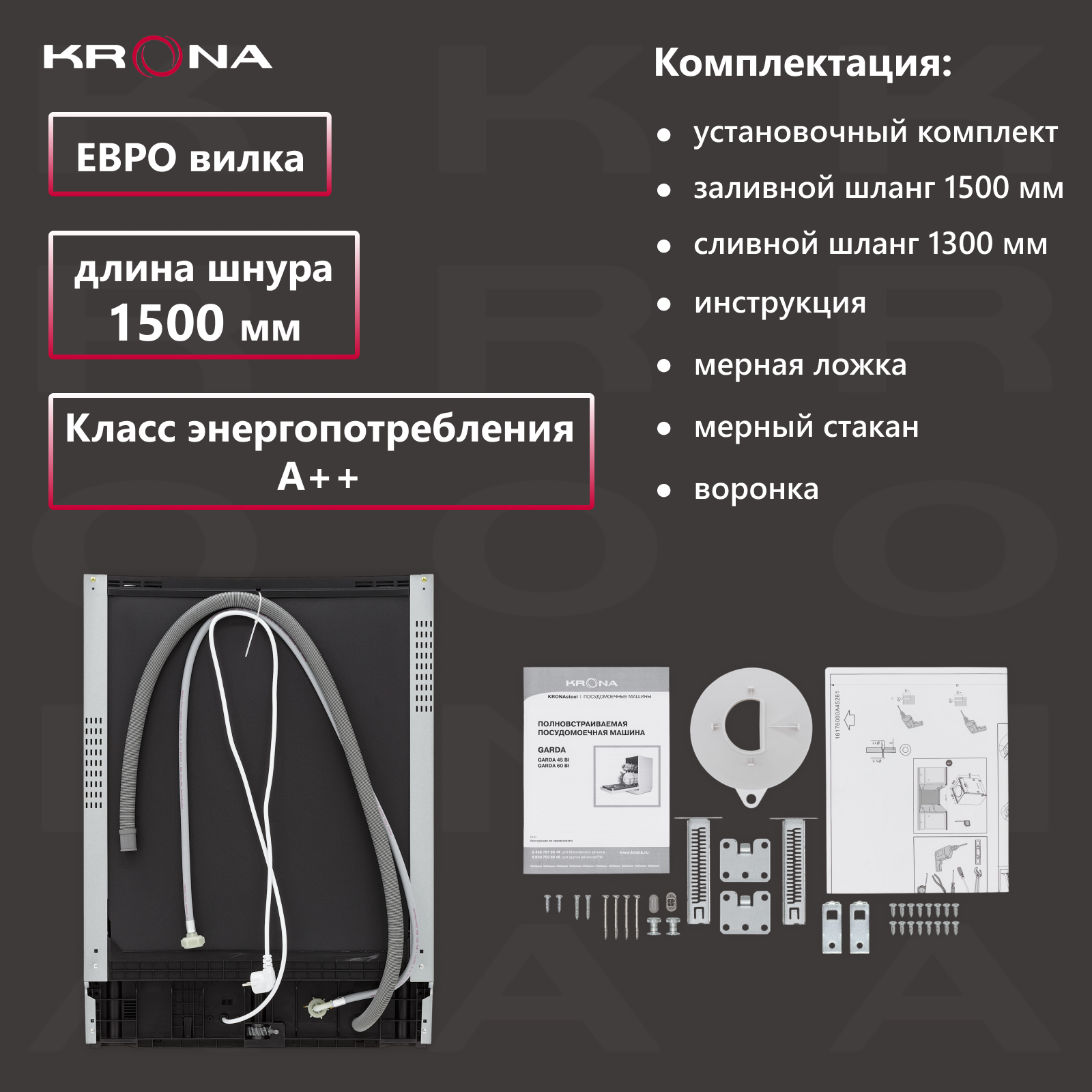 Посудомоечная машина Krona GARDA 60 BI встраиваемая, 60 см, 12 комплектов, 5 программ
