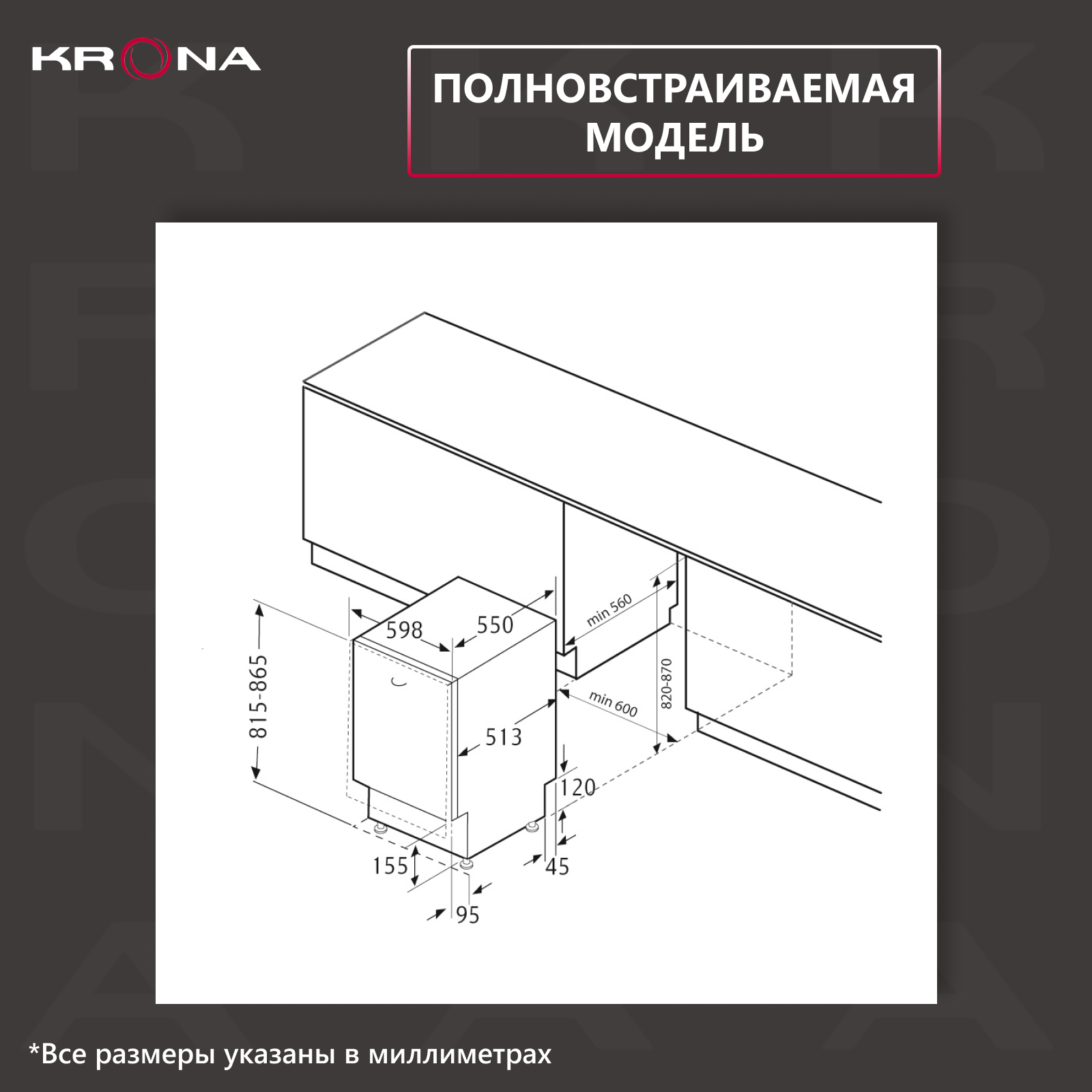 Посудомоечная машина KRONA GARDA 60 Bl встраиваемая черная