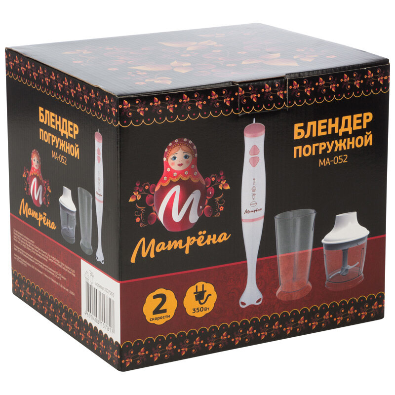 Блендер погружной матрена МА-052, 350Вт, 2 скорости, измельчитель, стакан для смешивания (007265)