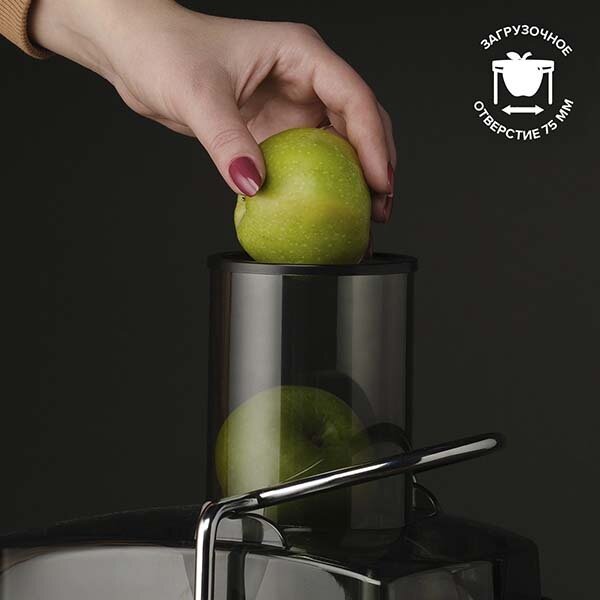 | Плюсы: | Горловина довольно большая, даже не надо тратить время на нарезание больших фруктов и овощей. Сока много получается и без пены, так, как есть пеносепаратор. |