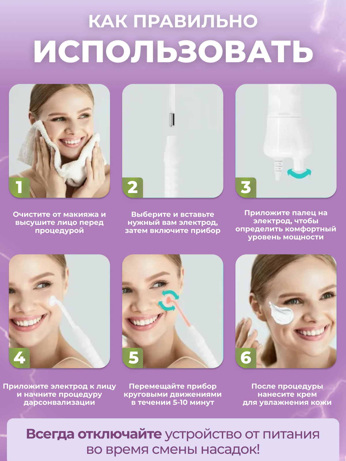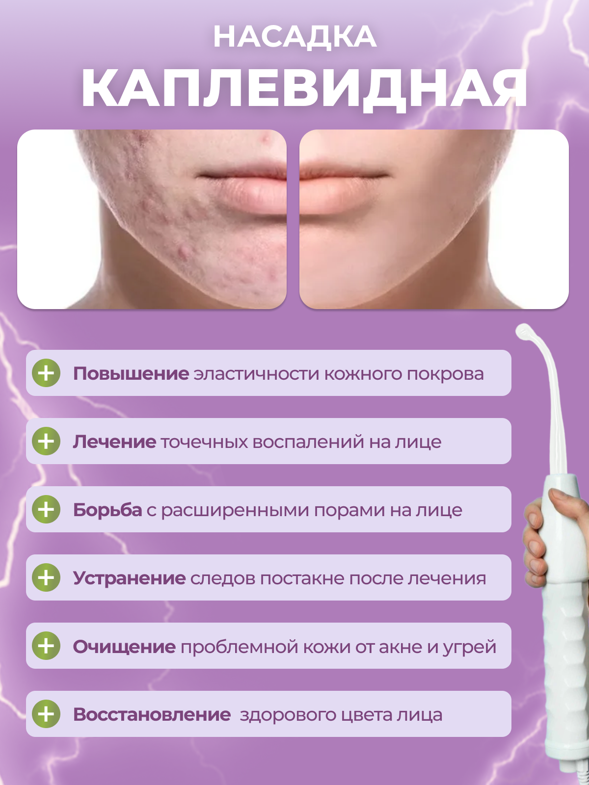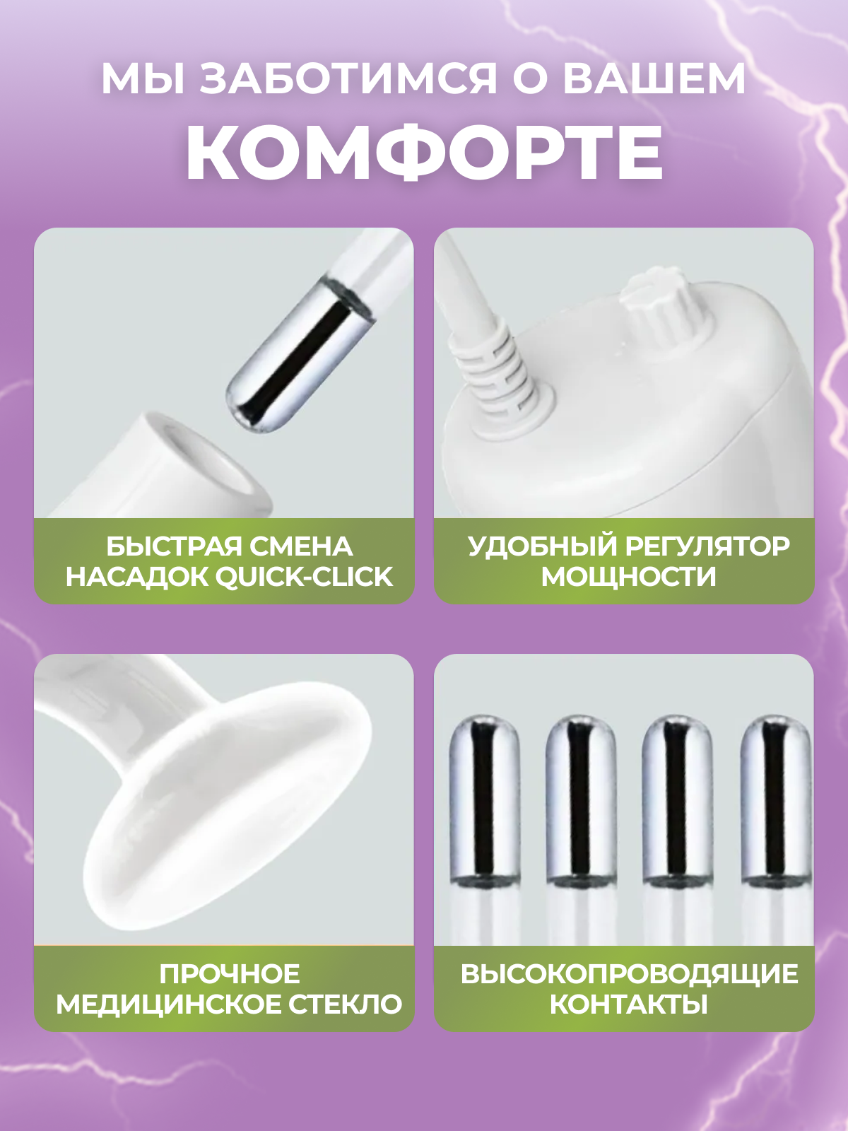 Дарсонваль аппарат для волос, лица и тела 4 сменных насадки интересное: