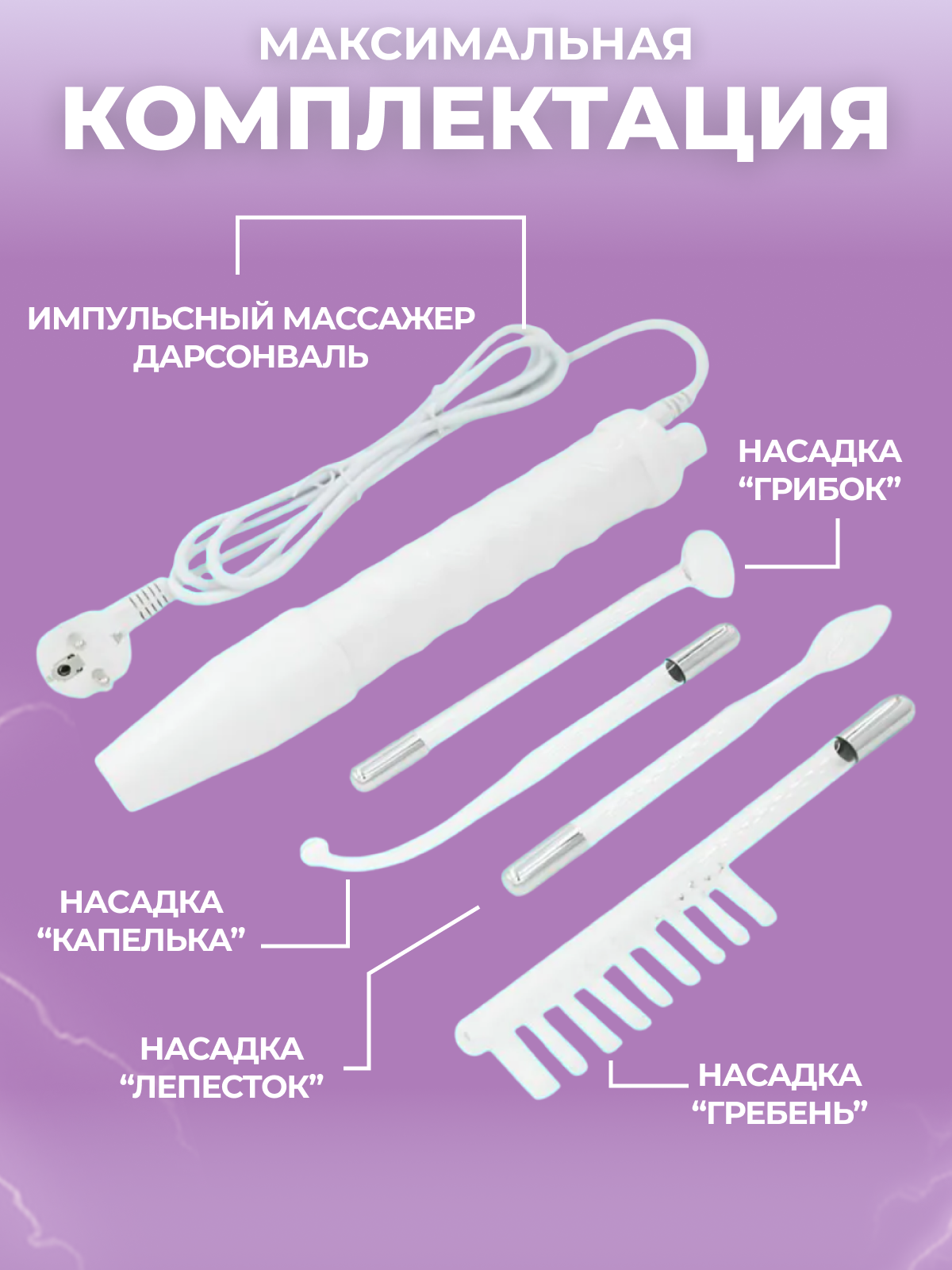 Купить Дарсонваль аппарат для волос, лица и тела 4 сменных насадки