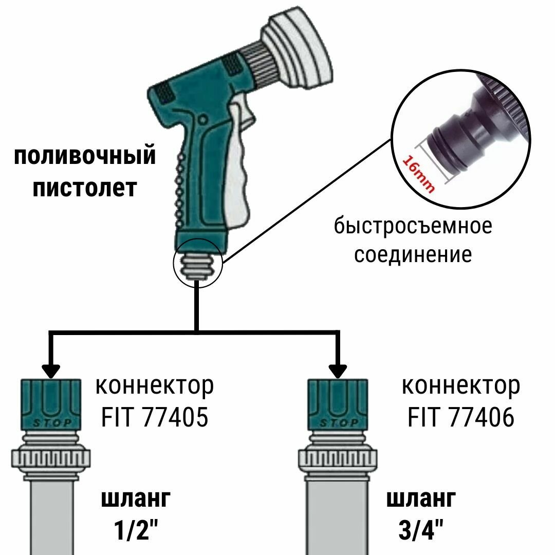 Пистолет для полива Fit , 8 режимов, зеленый 170 мм 77305