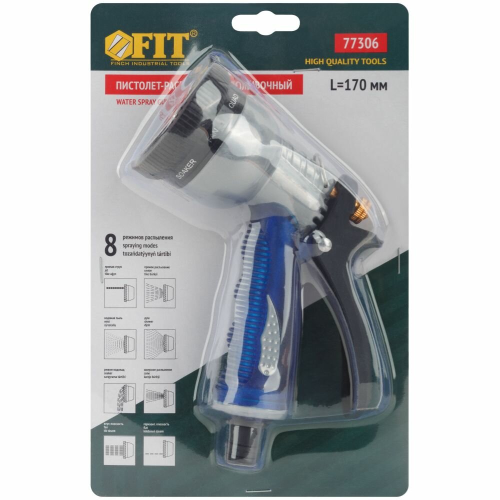 Пистолет для полива FIT 77306, 170 мм, 8 режимов распыления, тип соединителя Standart