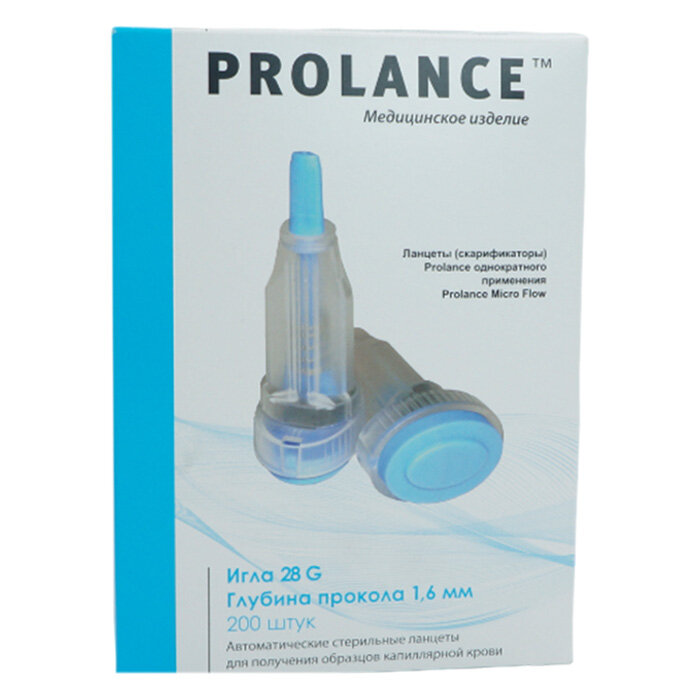 Купить Ланцеты Prolance Micro Flow для капиллярного забора крови 200 шт./упак, глубина прокола 1,6 мм, голубые