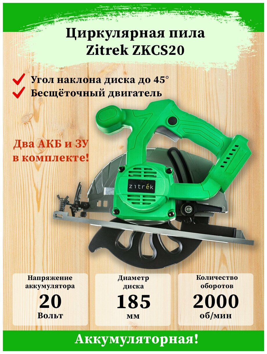 Аккумуляторная дисковая пила Zitrek ZKCS20 (185мм, 20В, 2 аккумулятора 4Ач, ЗУ)