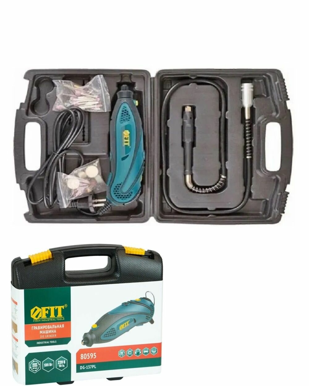 Гравировальная машина 135 Вт; 10000-32000 об/мин; 2,4/3,2 мм; БС щеток; набор насадок ; пластик. кейс FIT