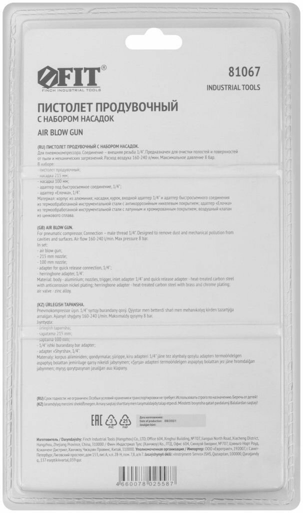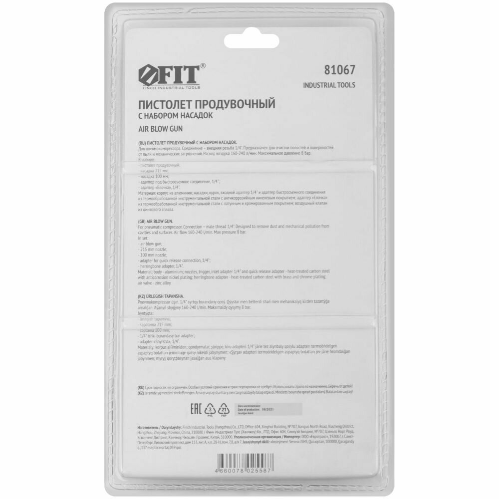 Пневмопистолет продувочный Fit IT 81067, с набором насадок