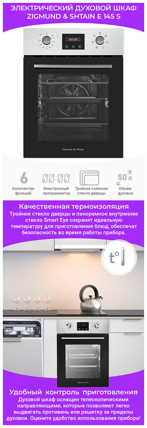 СохранитьВстраиваемый электрический духовой шкаф Zigmund & Shtain E 145 S интересное: