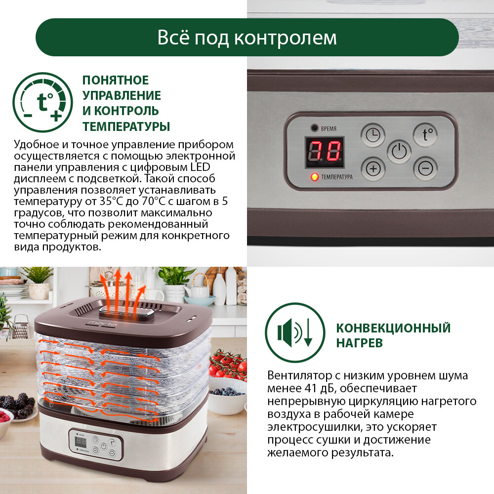 MARTA MT-1874 Сушилка для овощей и фруктов коричневый оникс