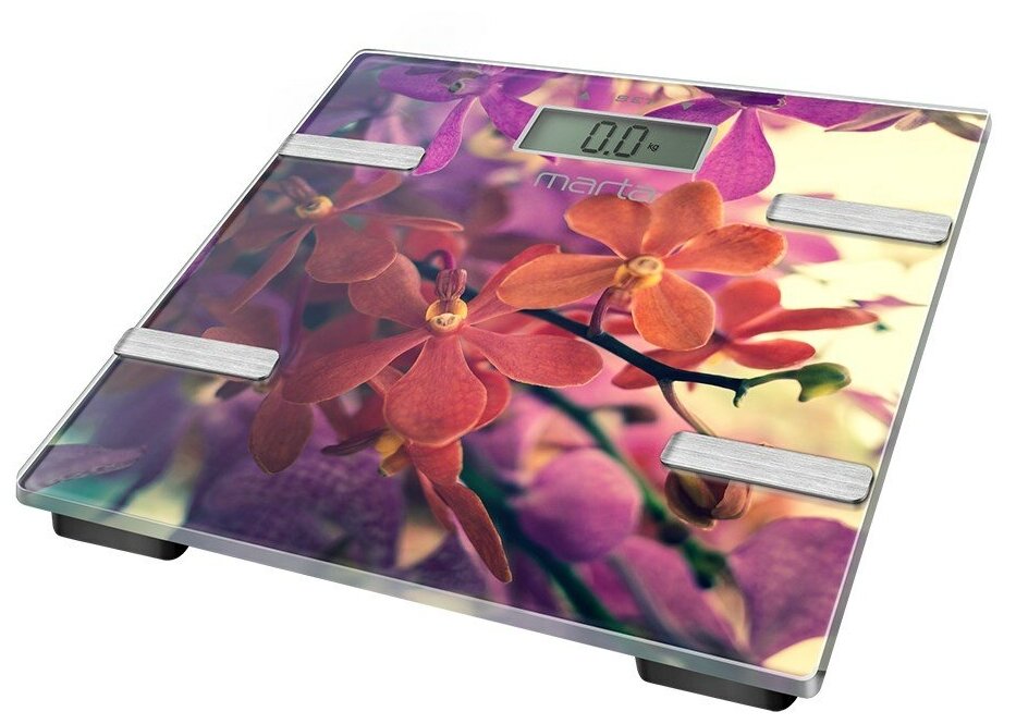 Купить Весы напольные Marta MT-1682 орхидея, стекло, ЖК дисплей, память на 12 пользователей, измерение уров .