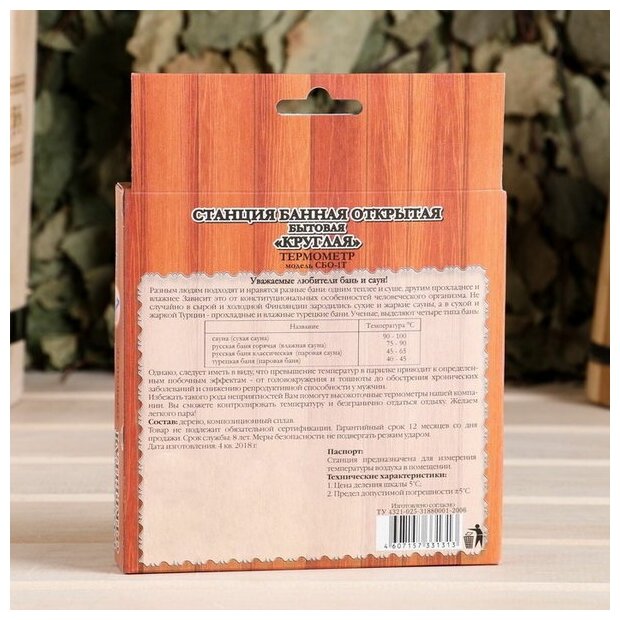 Деревянный термометр"Станция банная" открытая бытовая, от 0 до +140 С , . интересное: