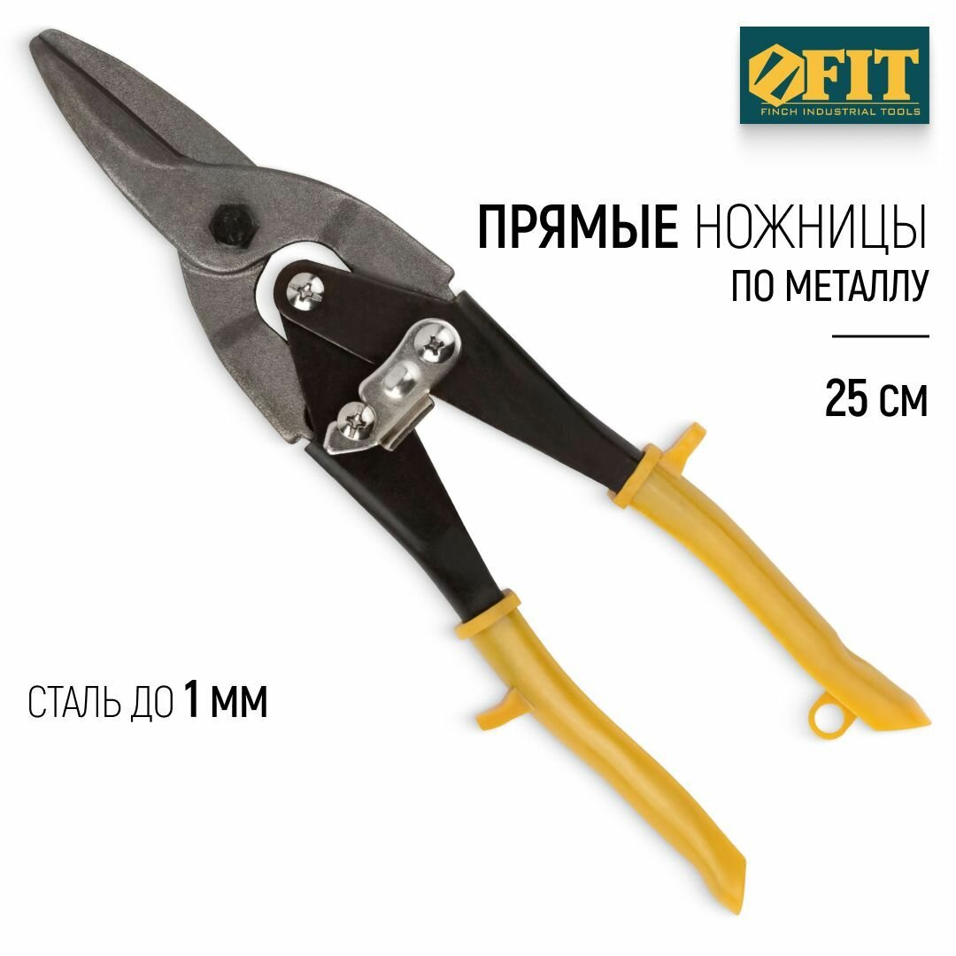 FIT Ножницы по металлу 250 мм правые усиленные CrV для стали до 1,2 мм и нержавеющей стали до 0,8 мм, прорезиненные ручки