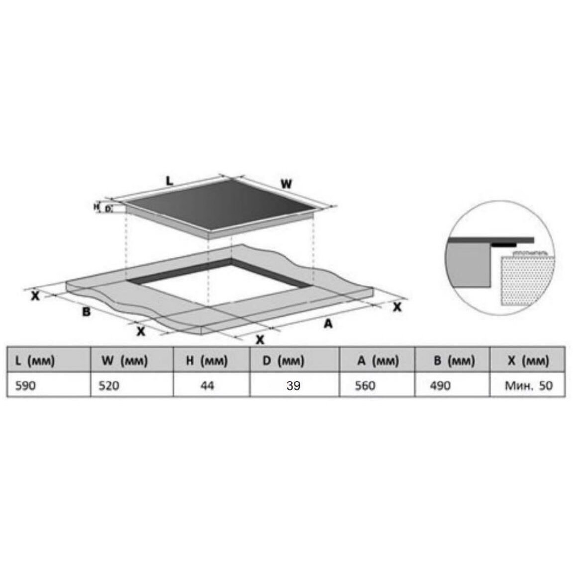 | Ширина для встраивания | 56 см |