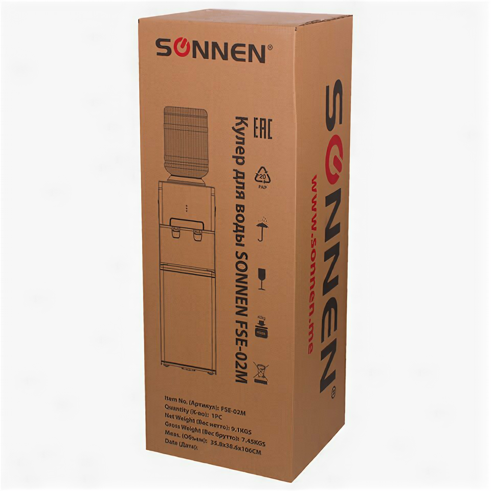 Кулер SONNEN FSE-02M, напольный, нагрев/охлаждение электронное, 2 крана, белый, 454999
