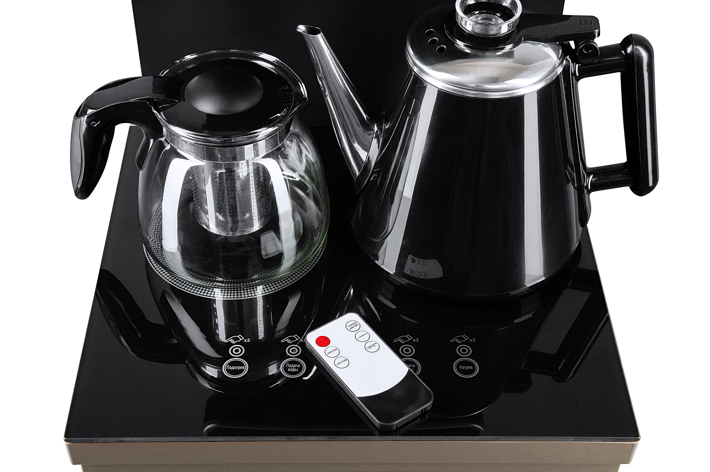 | Минусы: | Отсутствие отдельного элемента для подачи воды, не связанного с заварочным и электрическим чайником |