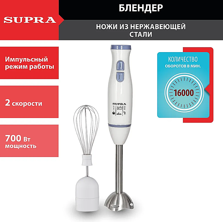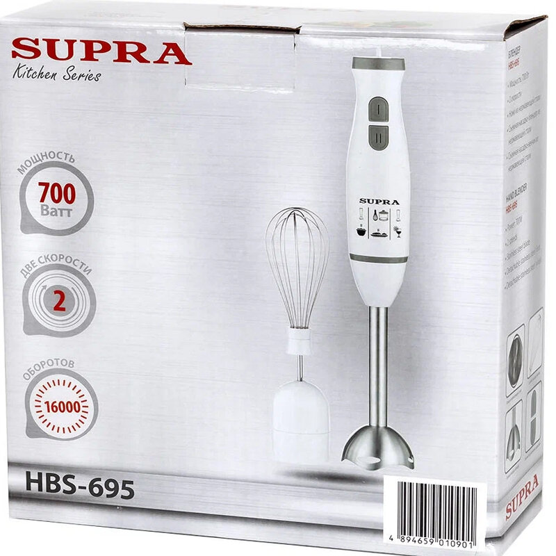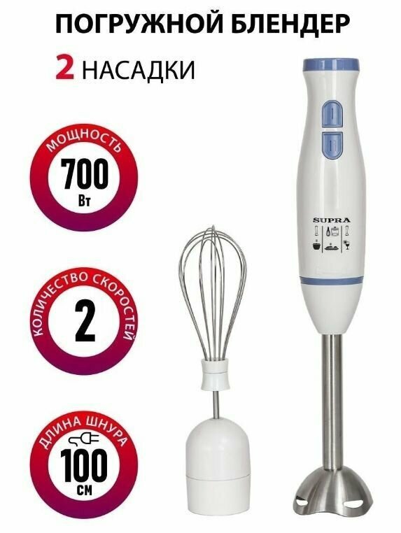 Блендер SUPRA HBS-695 [700 Вт, скоростей - 2, венчик, белый, голубой]