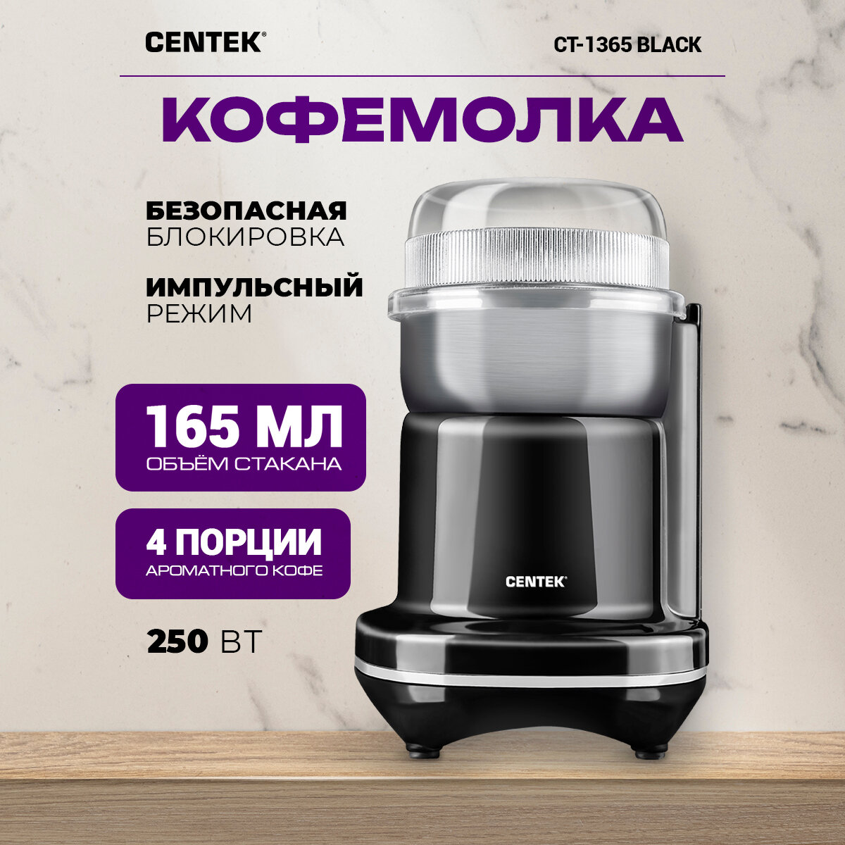 Кофемолка CENTEK CT-1365, черный [ct-1365 black]
