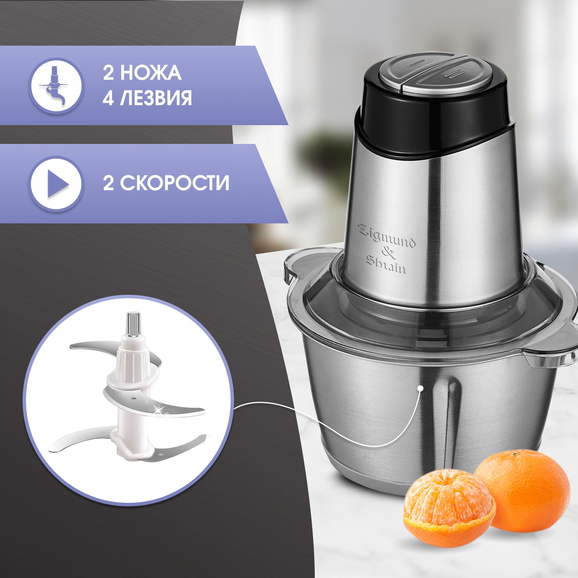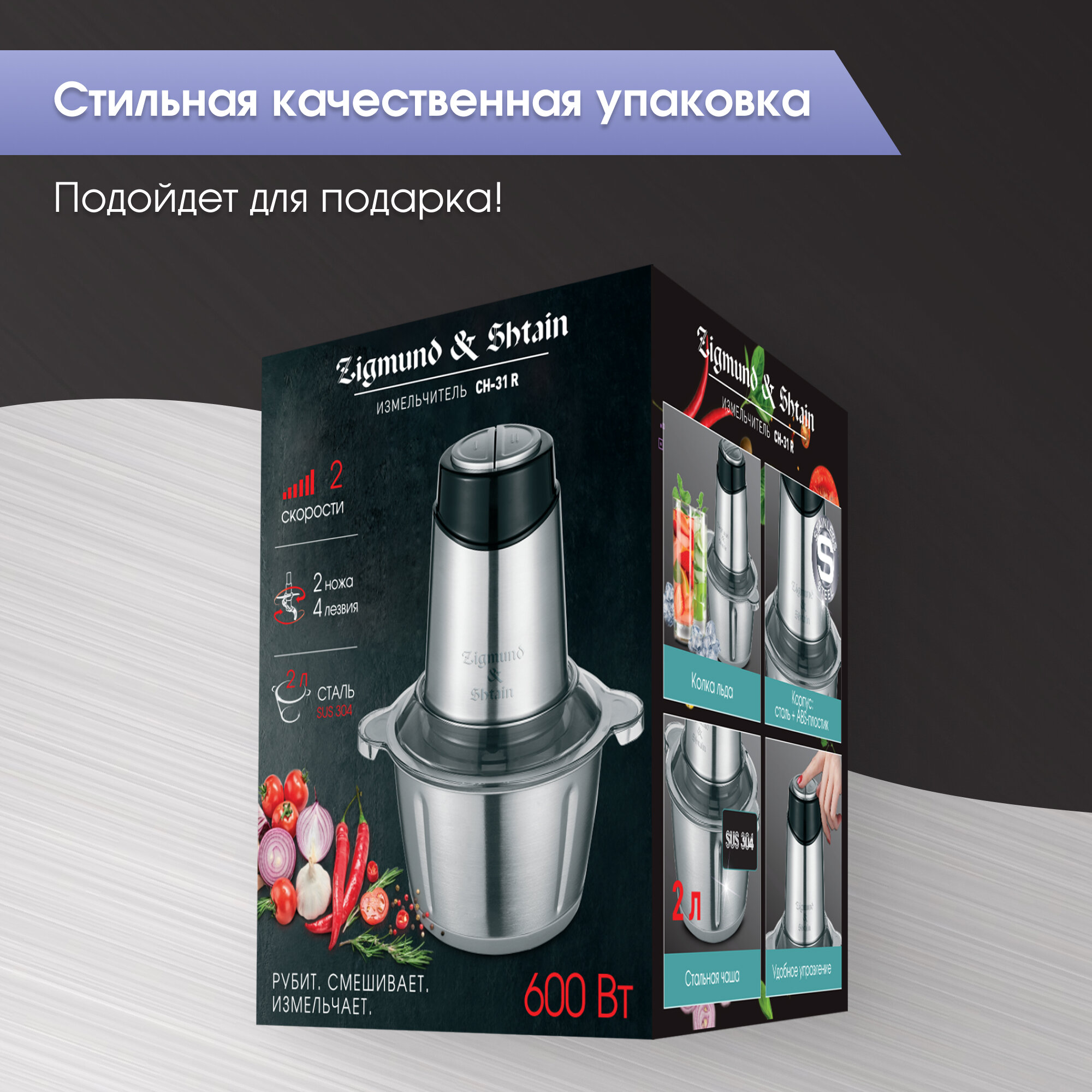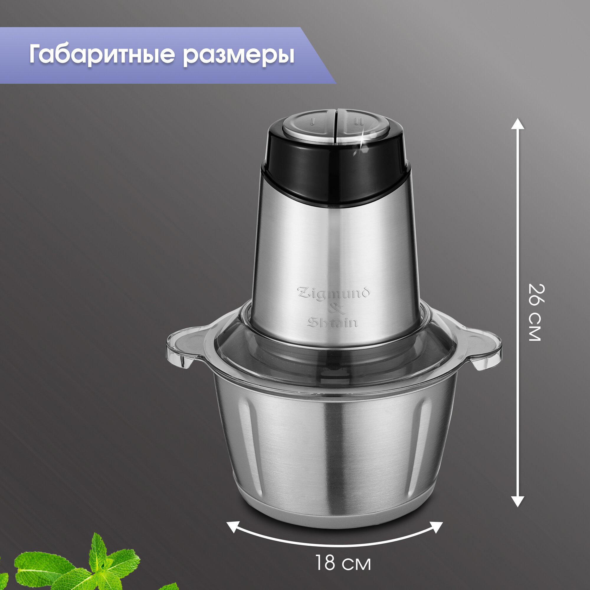 Измельчитель Zigmund&Shtain CH-31R /нерж.,600Вт, объем чаши 2л, универсальный нож/