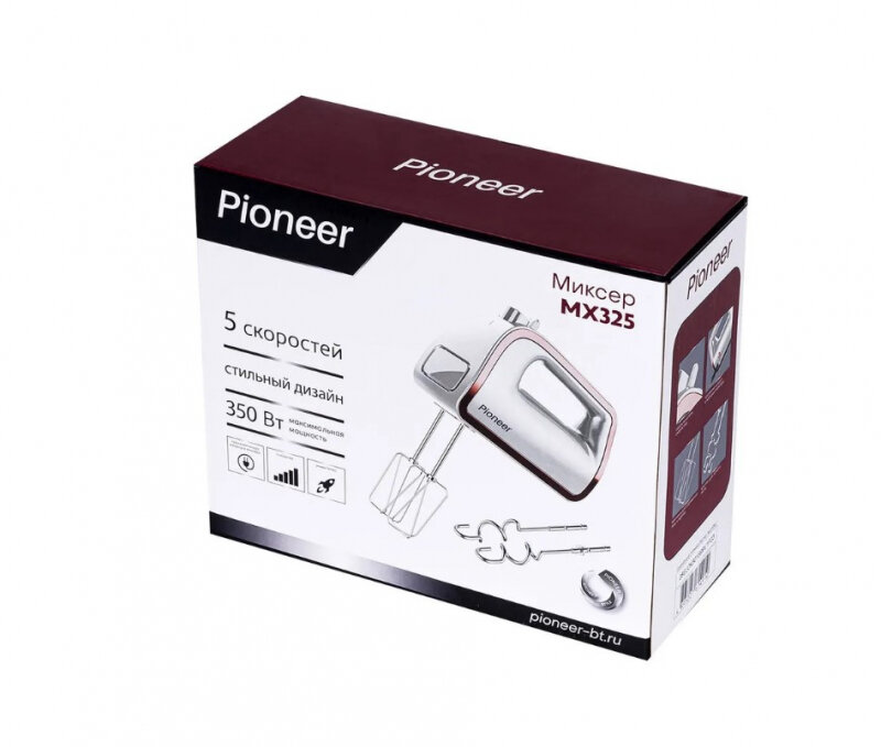 Компактный ручной миксер Pioneer MX325 с турборежимом, 5 скоростей, 4 насадки, 350 Вт интересное: