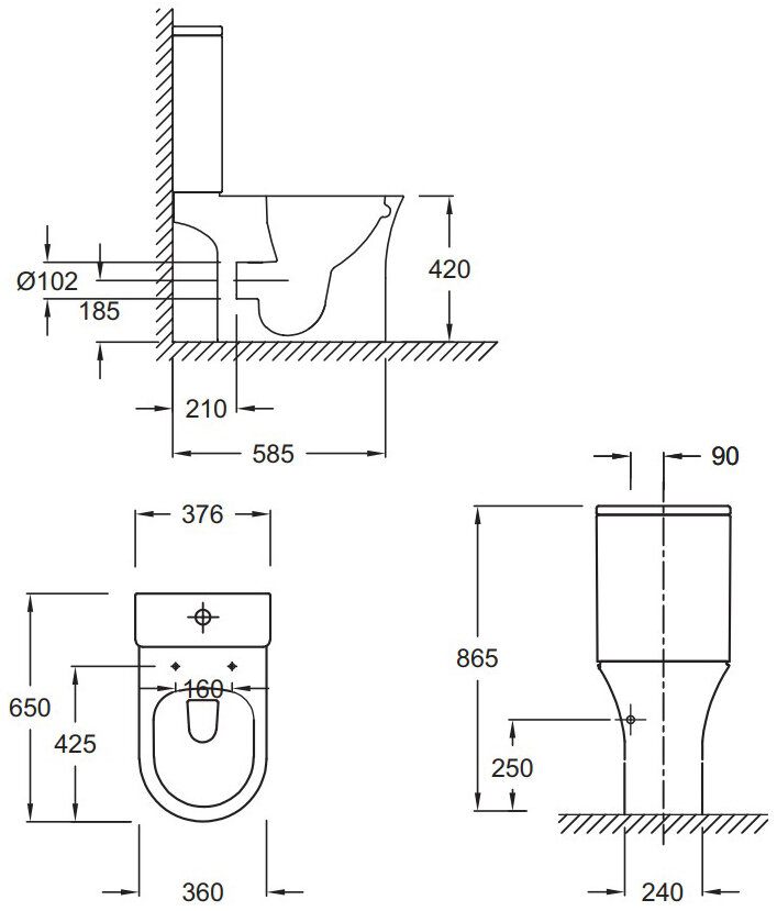 | Подвод воды | снизу бачка |