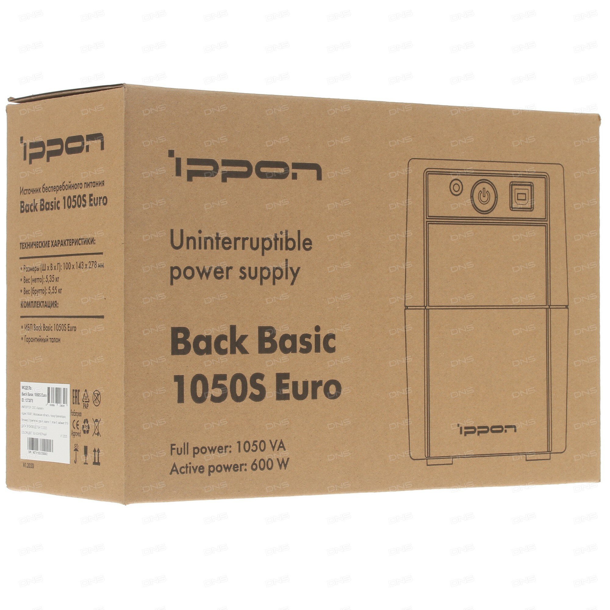 Источник бесперебойного питания Line-interactive Back Basic 1050 ВА/600 Вт фазы 1/1, Tower 3хSchuko USB type B, c АКБ, IPPON 1373878 (1 шт.)