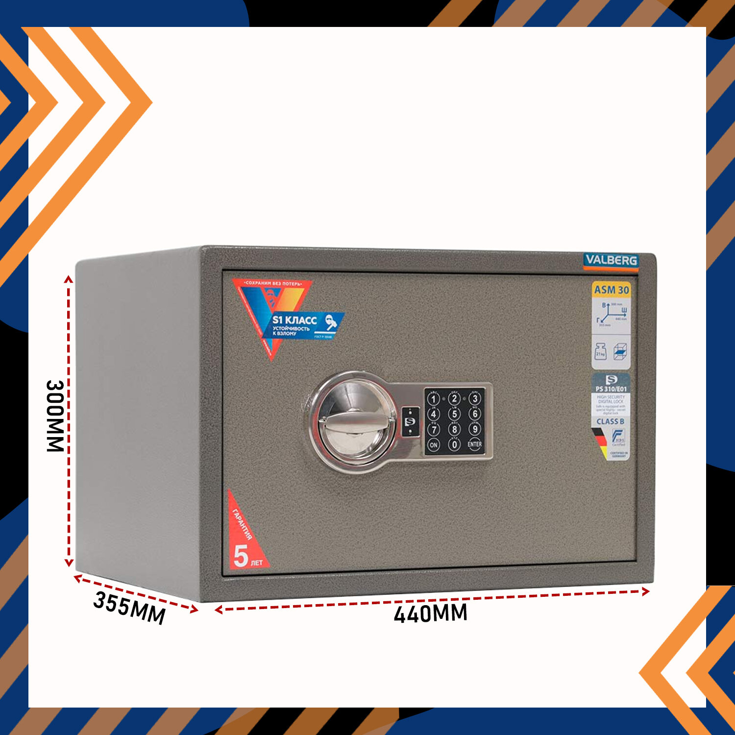Сейф VALBERG ASM 30 EL (ВхШхГ) 300x440x355мм Вес 21кг Металл 5 мм