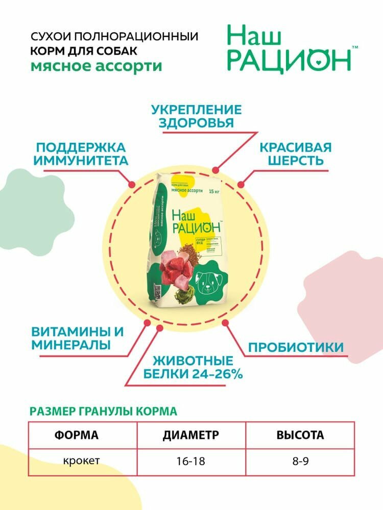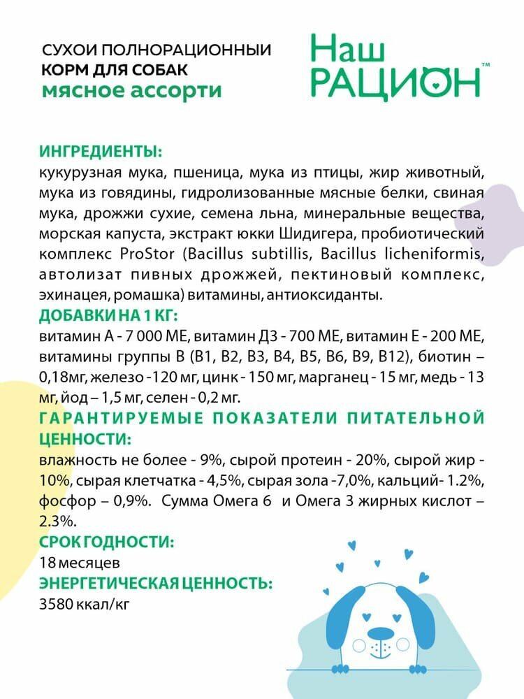 Наш Рацион сухой для собак Мясное ассорти 2кг интересное: