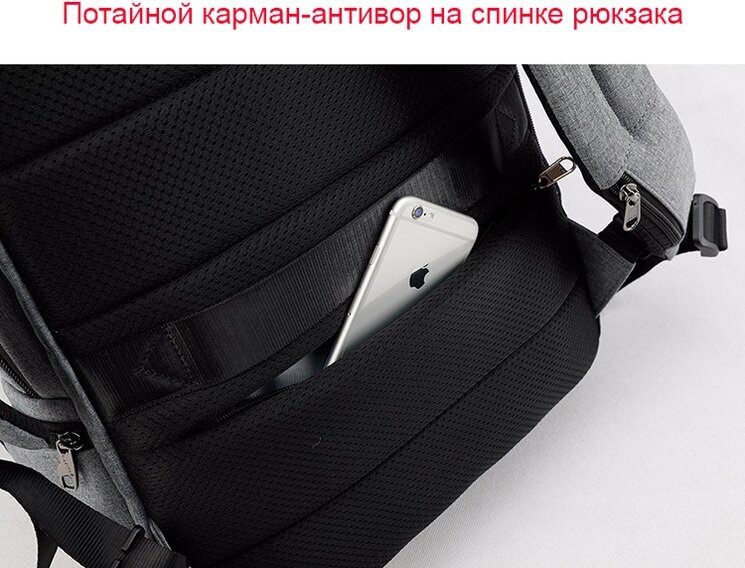 Рюкзак Tigernu T-B3516 для ноутбука, USB-порт для Power Bank, тёмно-серый