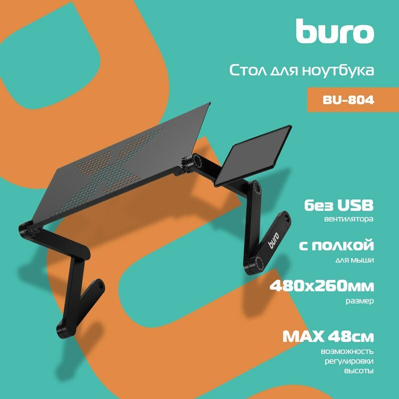 Стол для ноутбука Buro BU-804 столешница металл, черный, 48x26 см