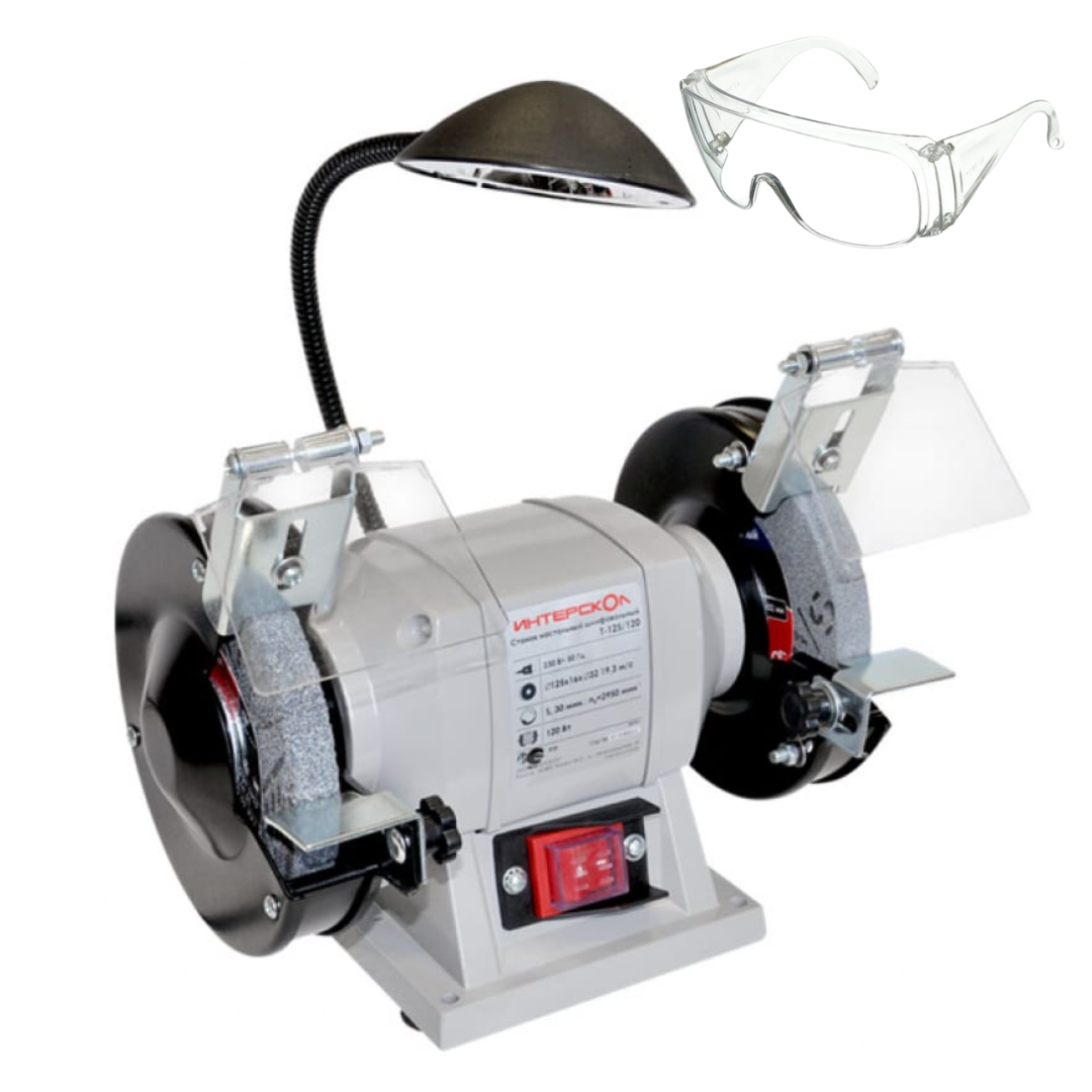 Точило с подсветкой ИНТЕРСКОЛ Т-125/120 + защитные ударопрочные очки интересное: