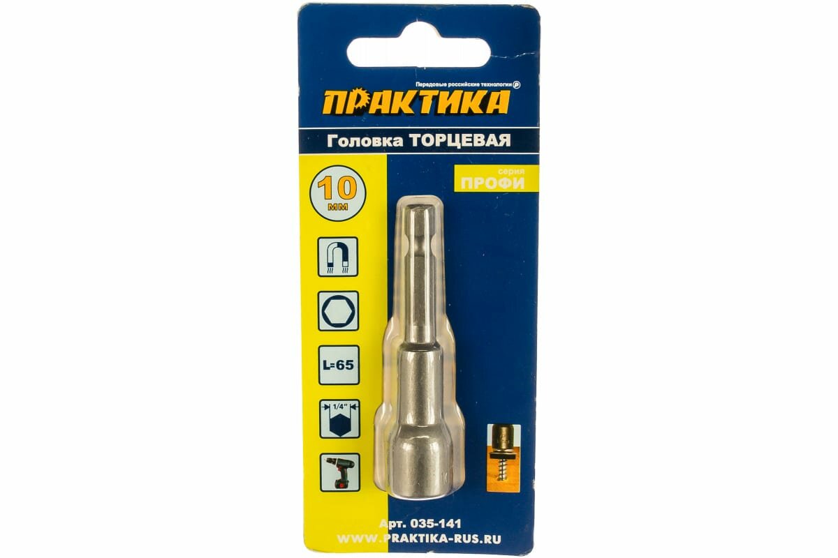 Головка гайковерта "Профи" магнитная 10 х 65 мм с хвостовиком HEX 1/4" (1шт) ПРАКТИКА 035-141