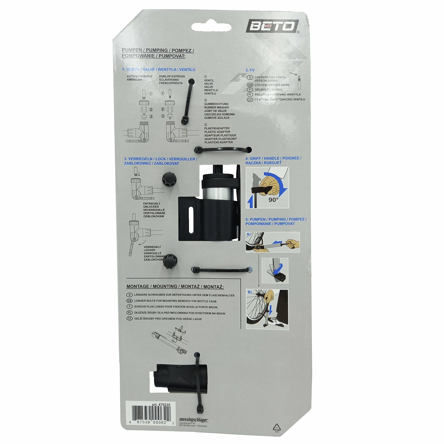 Насос BETO 5-470235 алюм. шланг.+ножн. упор. маном. универс. гол-ка Т-ручка (25) серебр.
