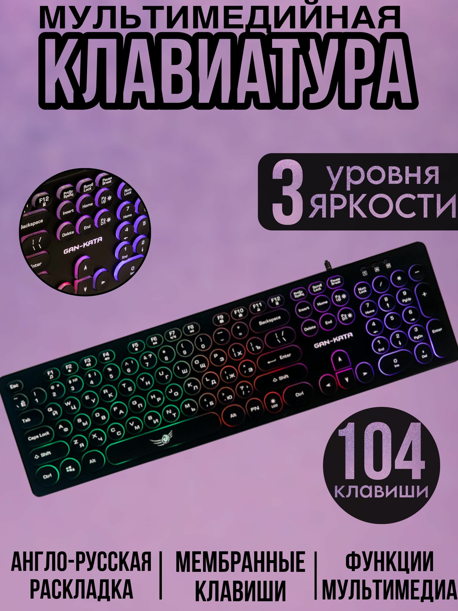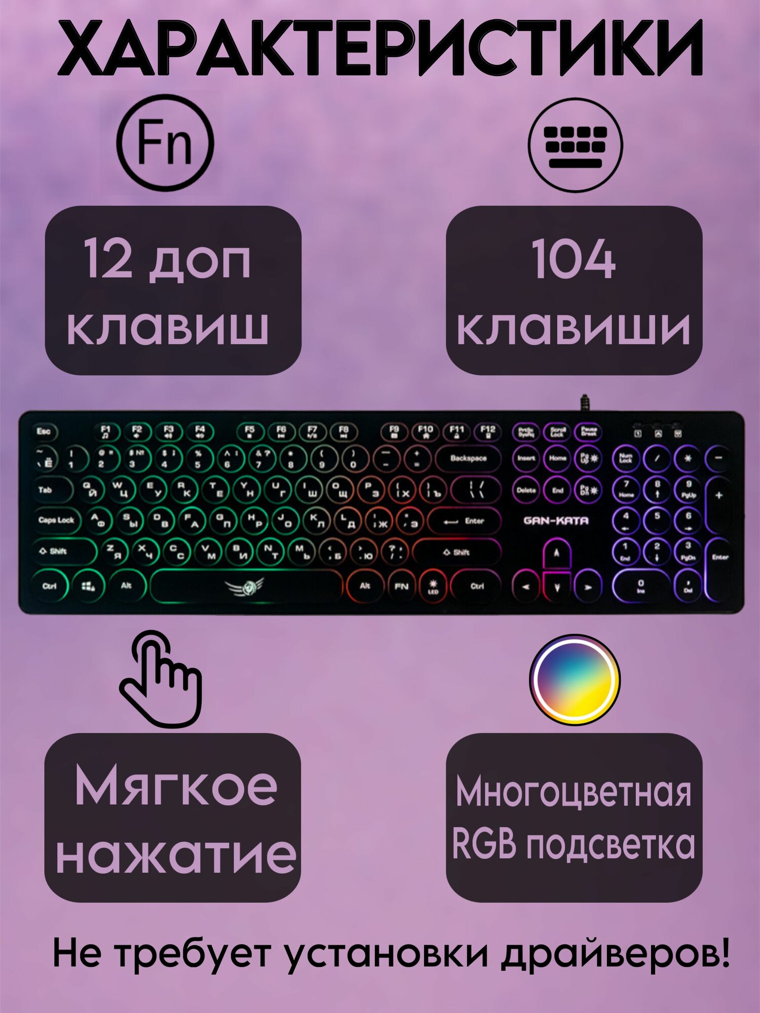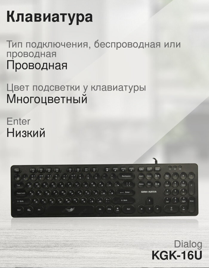 Клавиатура Dialog Gan-Kata Kgk-16u Black - игровая с RGB-подсветкой, Usb, черная .